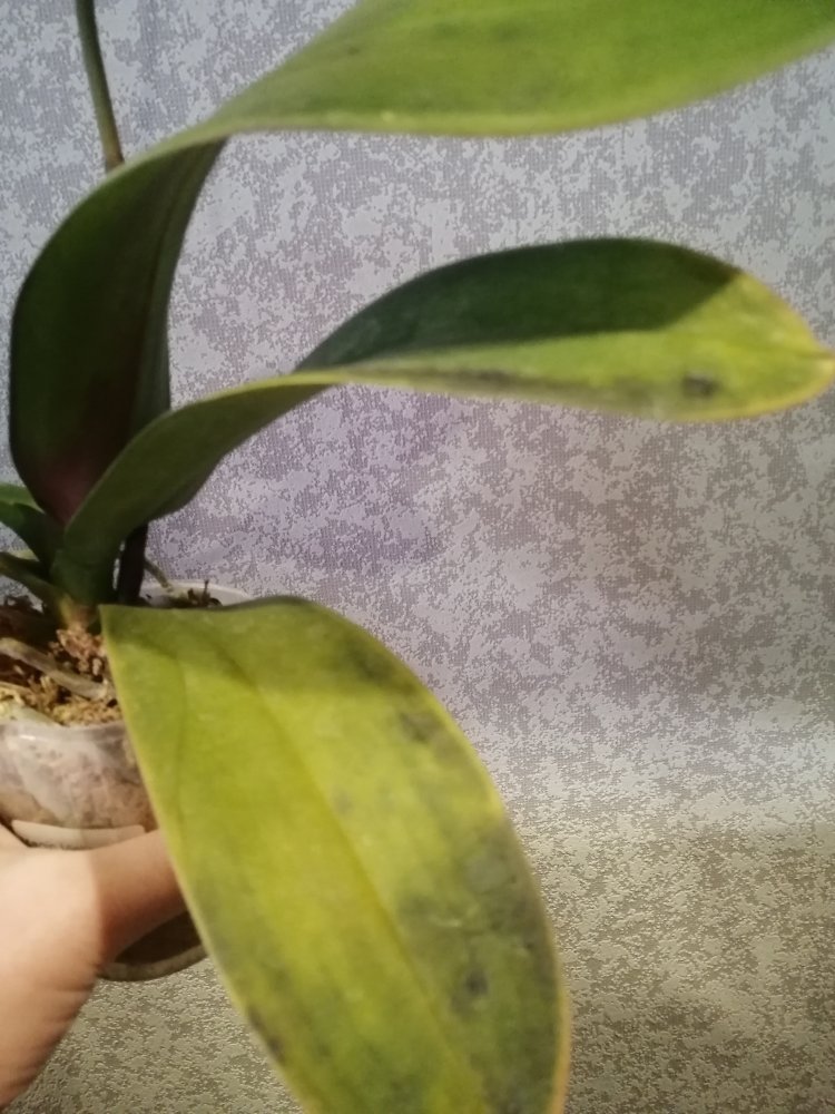 Сегодня забрала заказ, изначально было отличное растение с цветоносом, но сейчас оно все в каких то пятнах. Подскажите что с ним лучше всего сделать? Нужно обрезать всю черноту и чем его обработать.