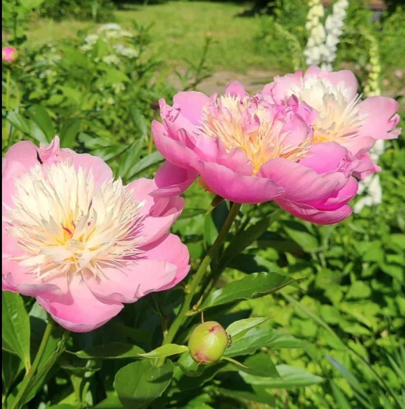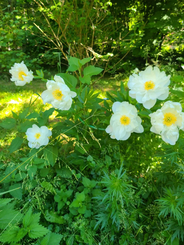 А пионы, растут, у меня ну как сорняки, зацвели, через неделю другую отцвели, куст огромный с зелёной листвой- вся эстетика. Даже спирея японская интереснее- ароматный, прямо медовый куст с мохнатыми соцветиями. Раздолье для пчёл и шмелей. Если ливень прошёл, хоть соцветия не отвалятся у пионов.