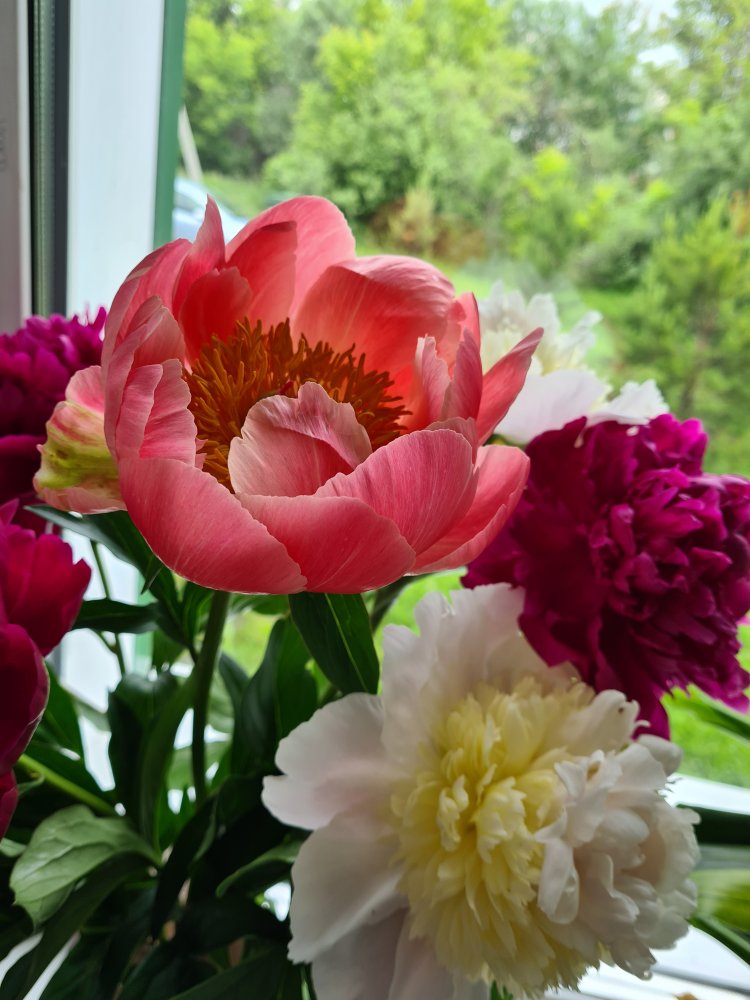 обожаю пионы, в прошлом году сфотографировала только в букете, сортовых у меня только шт. 4, остальные - бабушкины) Корал чарм цвел второй год и только один цветочек, зато крупный) моя мечта - бартзелло, но он не так быстро растёт, сидит третий или четвёртый уже год и все никак(.