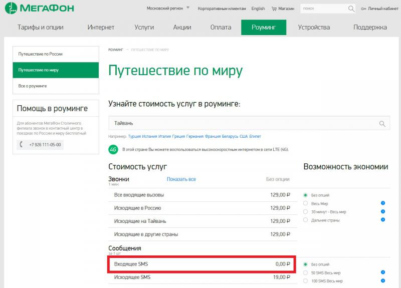 Входящие смс бесплатны в роуминге, платно исходящие смс и входящие/исходящие вызовы.