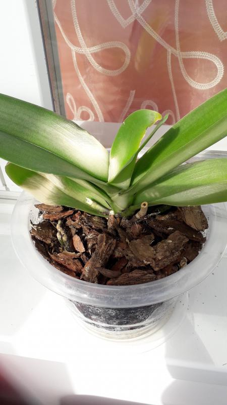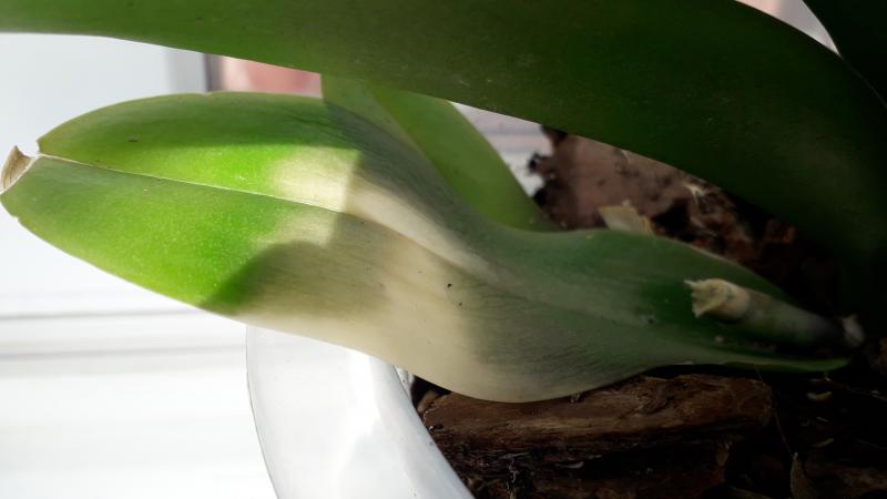 Добрый день! Помогите, пожалуйста, понять причину недуга орхидеи. Вводная информация: орхидея куплена пять дней назад в цветочном магазине в отделе уценки, т.к. отцвела и неизвестно какие у нее были и будут цветы. Вместе с ней куплен новый прозрачный вместительный горшок и грунт для орхидей (кора и мох сфагнум). Дома цветок по всем правилам освободила от старого грунта и торфяного кома, расправила корни и замочила их на 10 минут в теплой воде (воду для растений всегда беру из домашнего аквариума) с добавлением янтарной кислоты. В новый горшок насыпала керамзит, кору, посадила орхидею. Т.к. кора была уже влажная в пакете, а корни напитались влагой и позеленели, поливать сразу ее я не стала, поставила на лоджию (застекленную), восточное окно. Через три дня решила напоить орхидею, опять же использовала аквариумную воду, поместила горшок в тазик с водой на 20 минут. После этого слила полностью излишек воды через дырочки в горшке и вернула растение на окно. Сейчас наблюдаю такую картину 20190708_091440.jpg 20190708_091419.jpg 20190708_091412.jpg По листьям распространяется белизна, никаких вредителей не наблюдается, просто белеет часть листа и становится вялой и тонкой. Что я делаю не так и как остановить это явление? Помогите, пожалуйста, это моя первая орхидея...