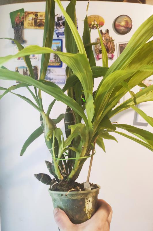2. Хизис Chysis limminghei покупался давно на охоте. Большое растение, много бульб и корней. Цветет с каждого роста по два цветоноса. Любит попить. Сейчас наливаются бульбы после цветения. Есть один запаздавший ростик с цветоносом. 1700 р.