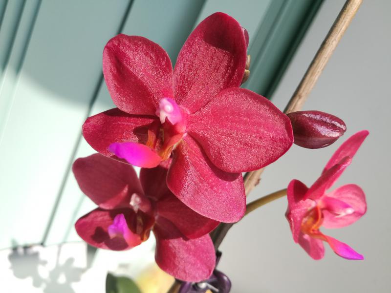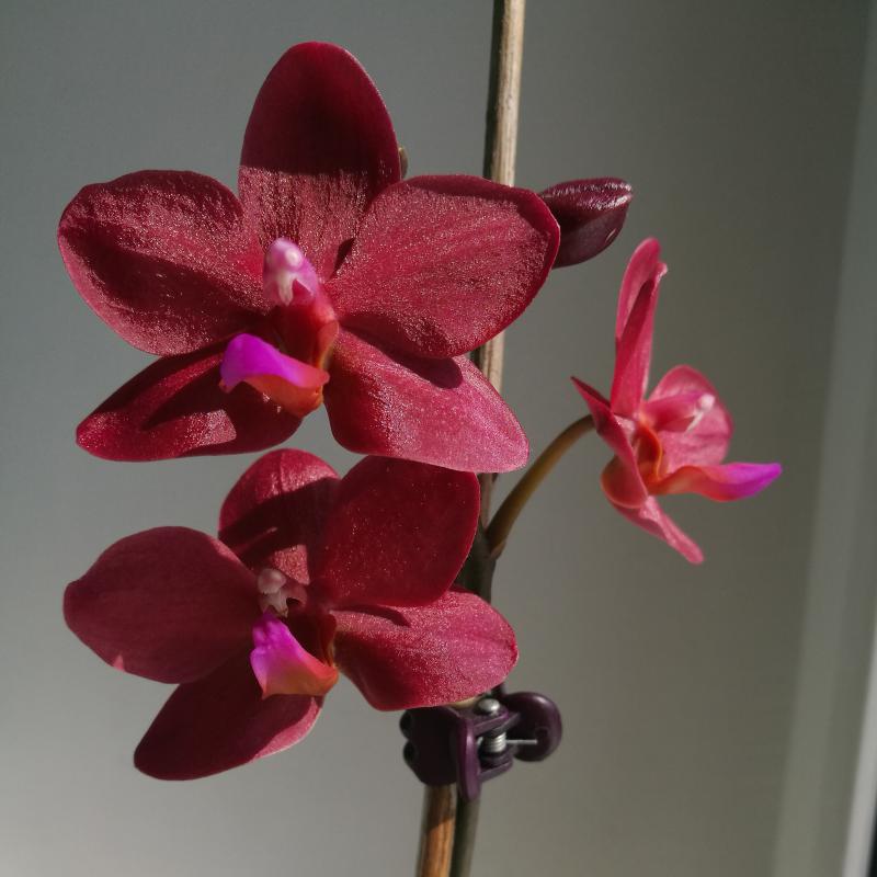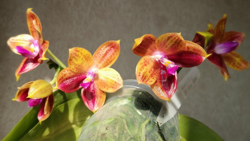 Получила этой зимой, сейчас отцветает. Очень яркий на солнышке. Пришел как материнское растение обрезанное под пенек, с боковой деткой. Она и цветет и активно растит корни.