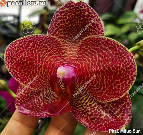Его родителями являются Sunrise Red Peoker × Phalaenopsis Fusheng's Super Man