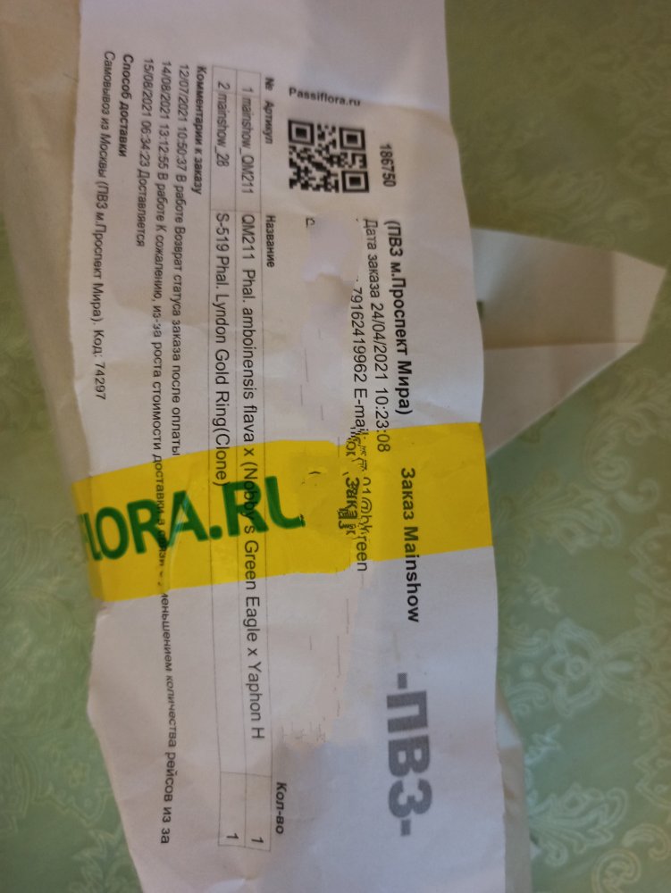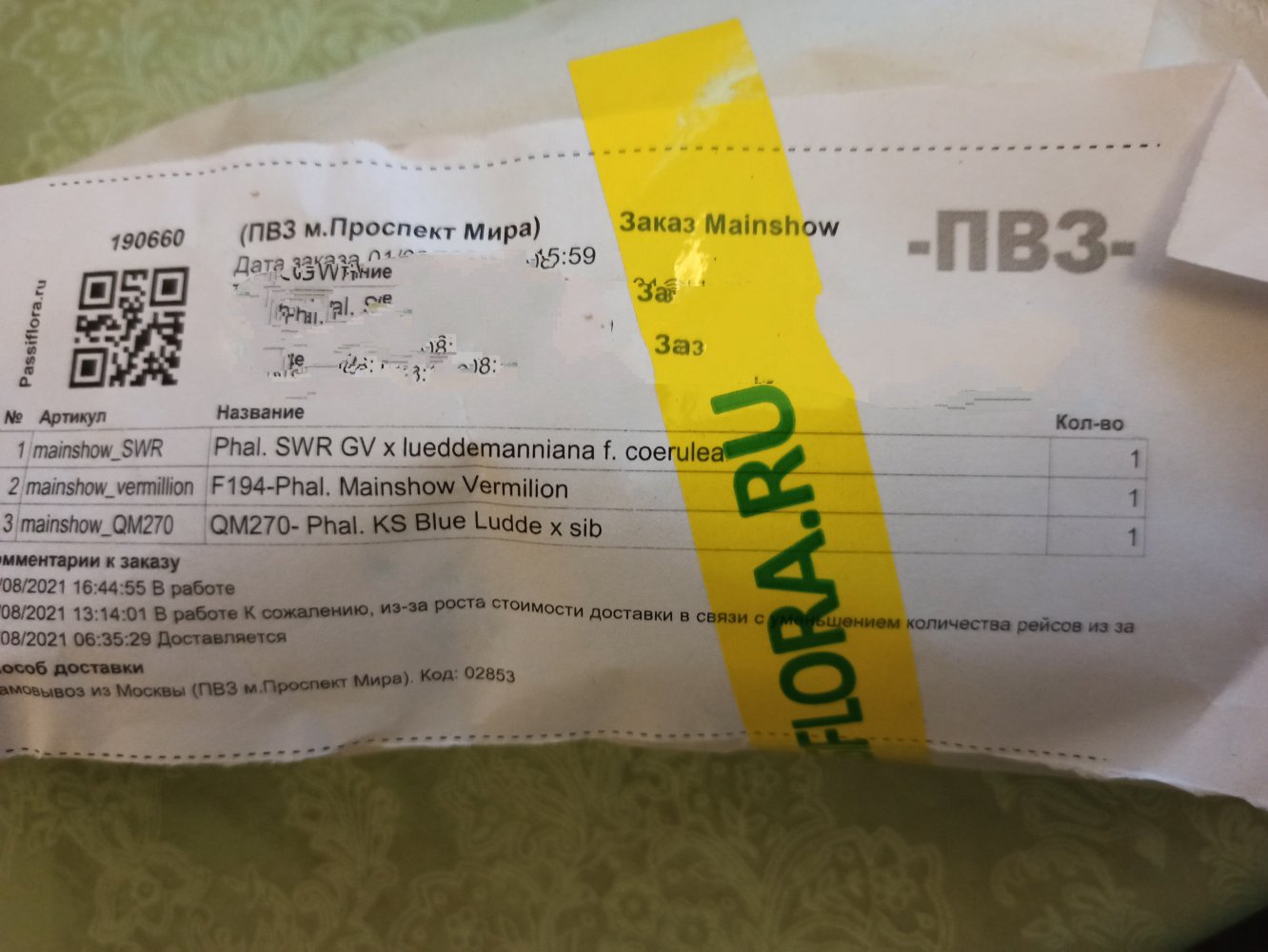 Заказ 190640 от 31.07.2021, забрали из ПВЗ в день получения СМС, дорога до дома 1,5 часа. В заказе два растения, качеством полученных довольна очень 😀Спасибо Пассифлоре за такие супер орхидейки и респект за супер быструю поставку 😀