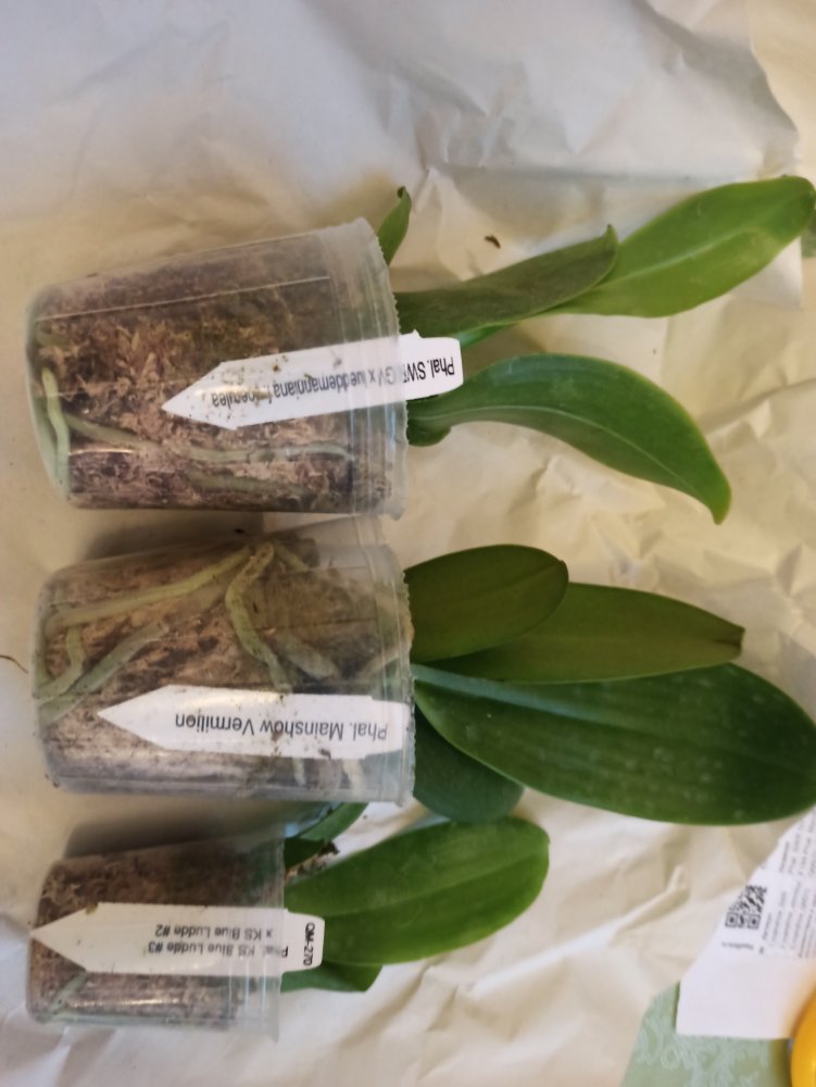 Phal. KS Blue ludde x sib. 2 в размере 2,5, третий 1,7. Все хорошие,чистые, здоровые. Мох чуть влажный, корней достаточно много видать. Качество отличное. Спасибо Пассифлоре.