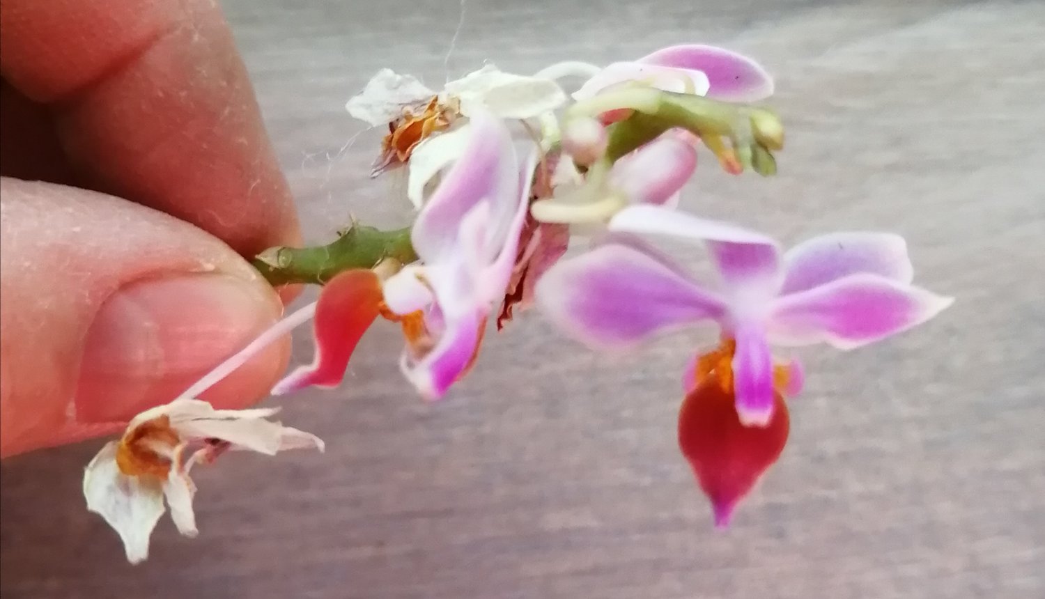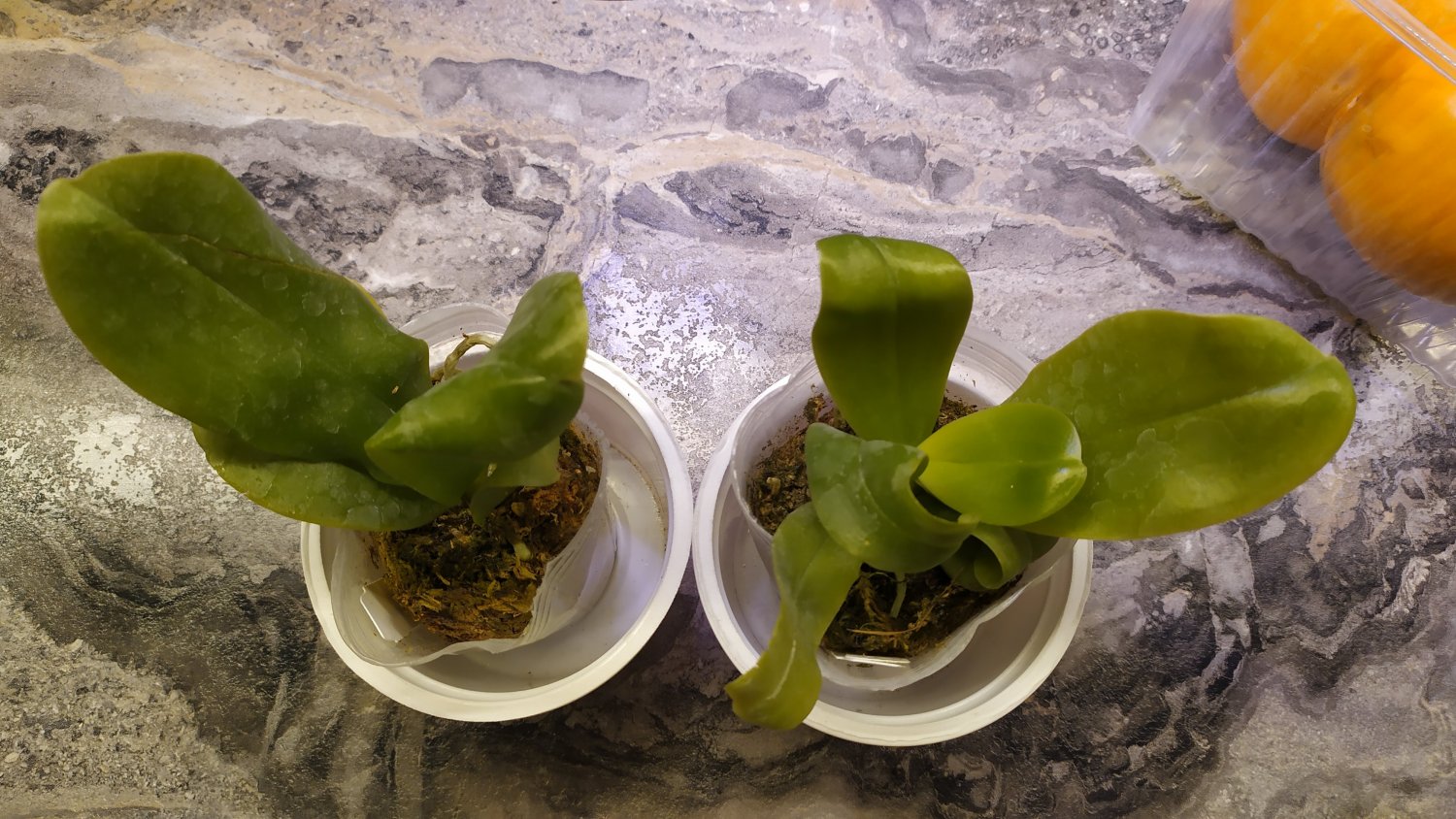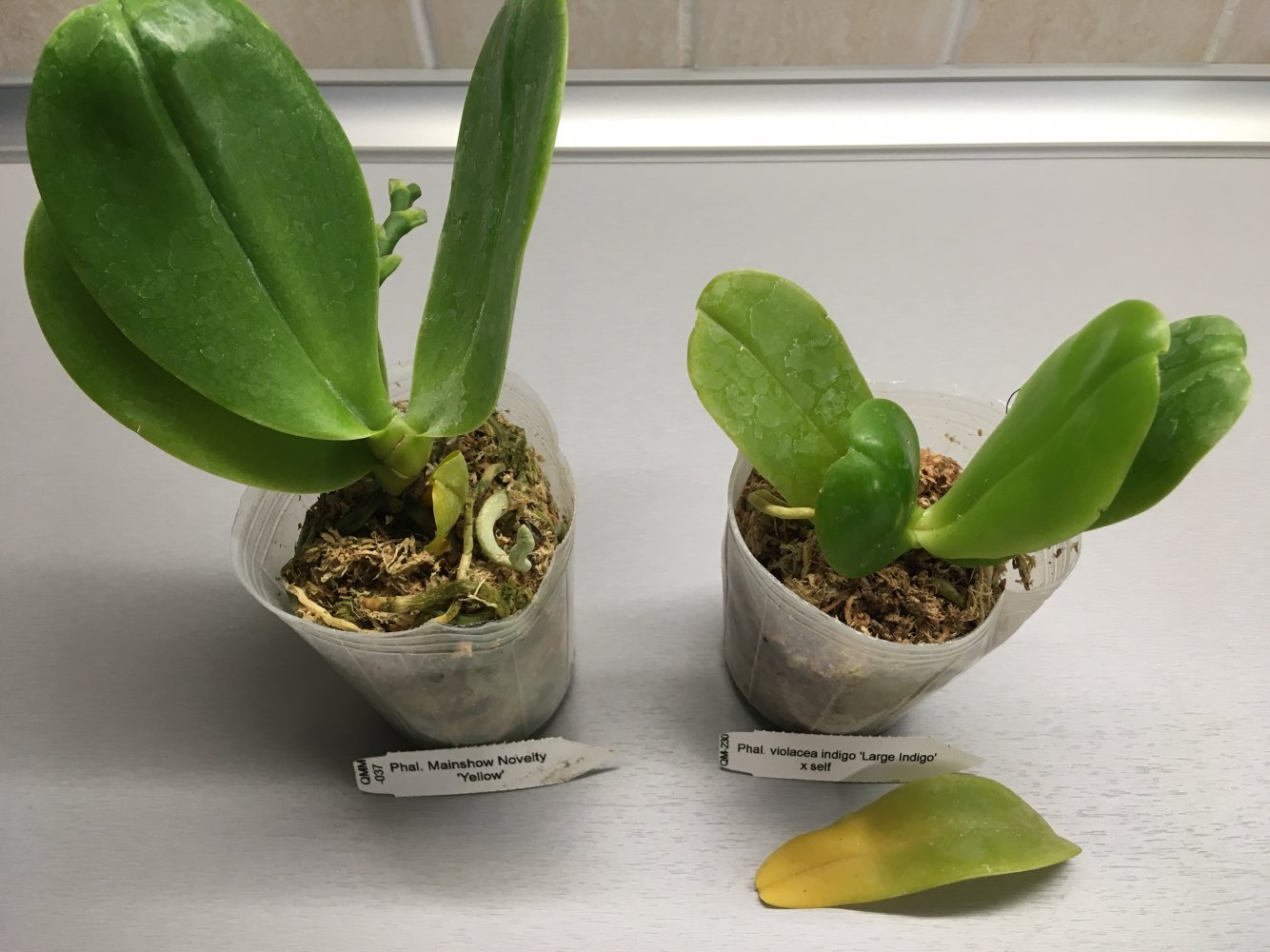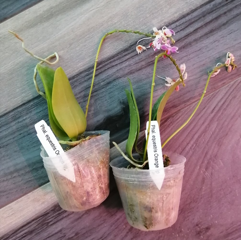 В заказе 2 растения: QM115 Phal. equestris orange lip и H338 Phal. violacea var. indigo × gigantea var. alba.