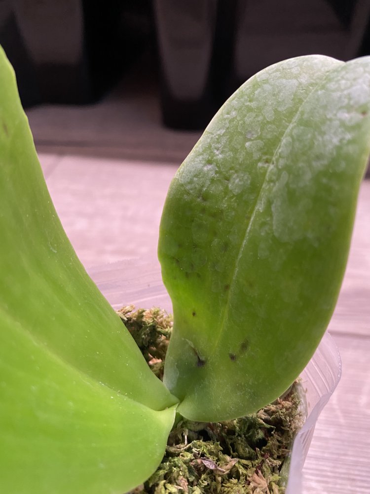 Молодые, тургор максимальный, ни пятнышка. Корни здоровые, мох не слишком сухой не слишком влажный.