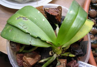 Долгожданный Phalaenopsis equestris, пришел мокрющий в багажном вагоне, где очень большие колебания температуры, т.е. его вроде так-то отапливают, но во время остановок двери нарастапашку... а он был в газете, коробке из под сока и + основная коробка...