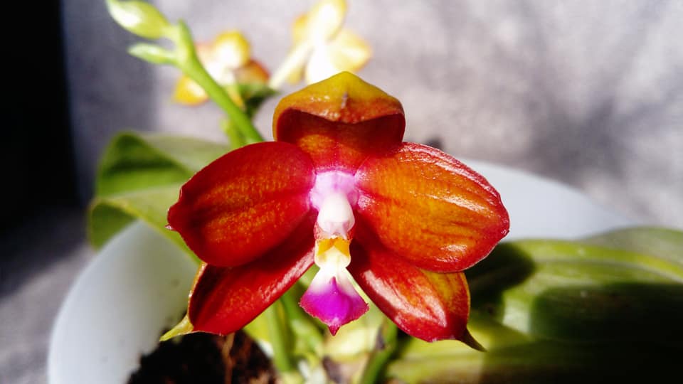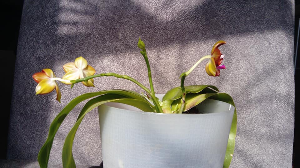 Cyc. TIDC purple Frilled Lizard orange coffee. Расцвела такая причудливая морковка с мудреным названием , из которого следует, что должно быть еще и что то пурпурное, но его нет)). Получала 2 одинаковых из спеца уже в зиму 2020. Обе были в отличном состоянии, спящими, но с цветоносами. Одна цветонос отсушила, а вторая процвела. Затем обе уснули полностью. После получения их не трогала, только обработала на всякий случай от клеща. Весной тронулись в рост, и как немного подросли, достала из мха (корней было много старых и все живые) и посадила в этот же стаканчик (чтобы корни лучше прижились) в крупную кору, добавила Осмокот и сверху укрыла их родным мхом. С тех пор так и растут. Лето росли на южном окне без притенки вообще. Полив от души, часто и много. Раз в неделю 5-минутый душ всего растения целиком (это лето так делаю со всеми морковками, результат потрясающий). Одна сейчас зацвела, вторая тоже выдала и растит цветонос. После зимнего отдыха к весне перевалю обе в стаканчики побольше уже только в одну крупную кору без мха. И о цветах - соотношение ботва/цветы потрясающее! Морковки маленькие, цветонос большой, цветы огромные (для такого размера самого растения). Каждый цветок около 6 см. Пока не ароматные, но будут обязательно, помню по прошлому цветению.