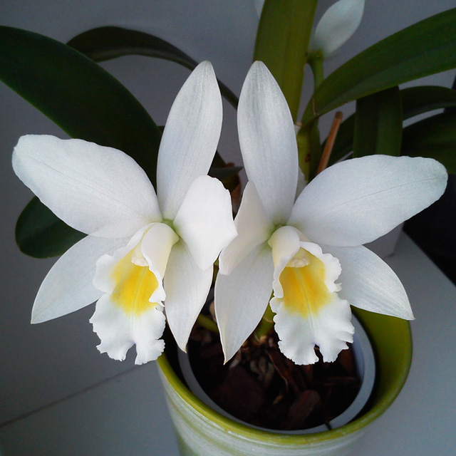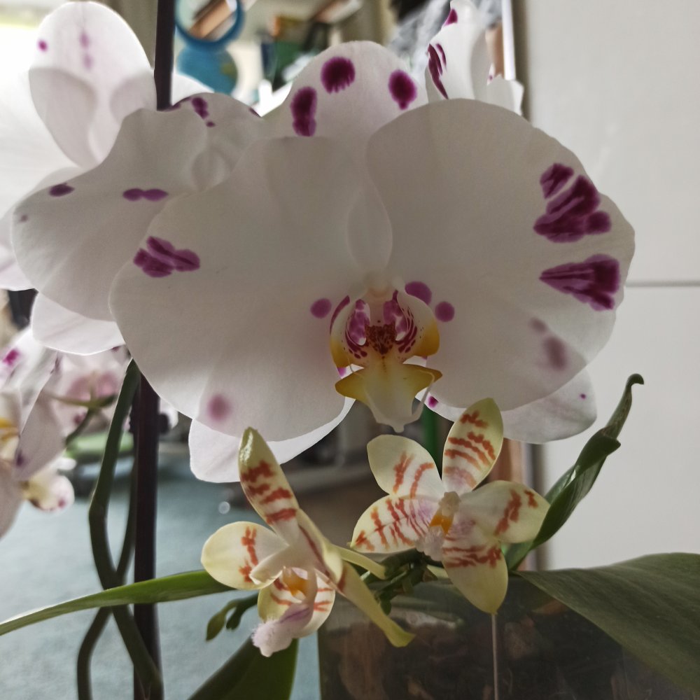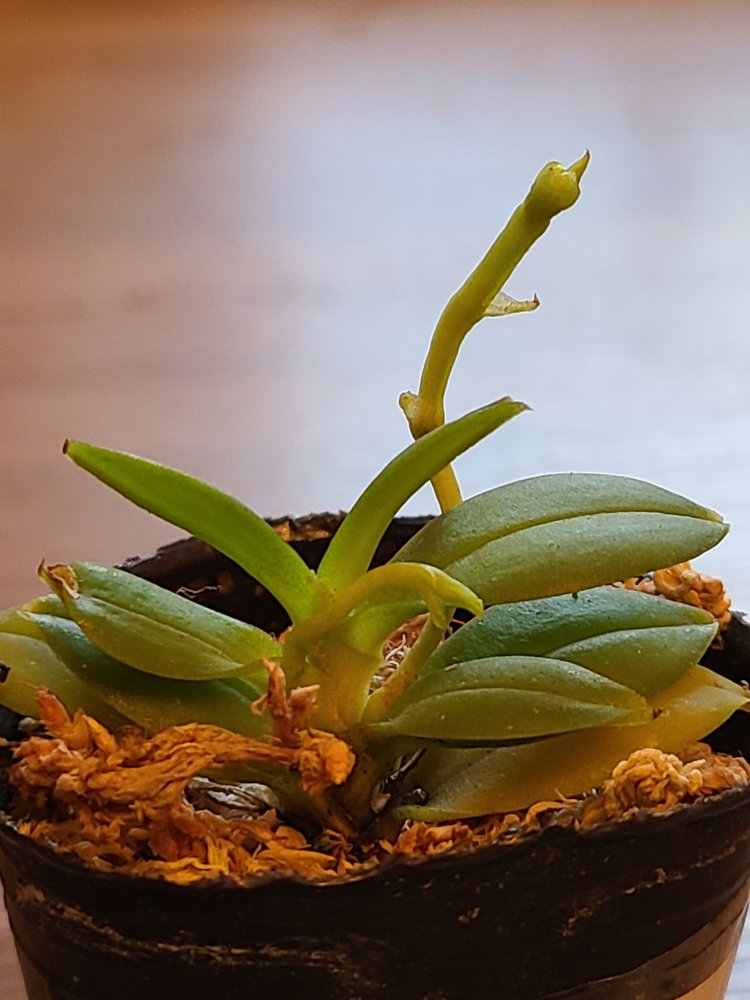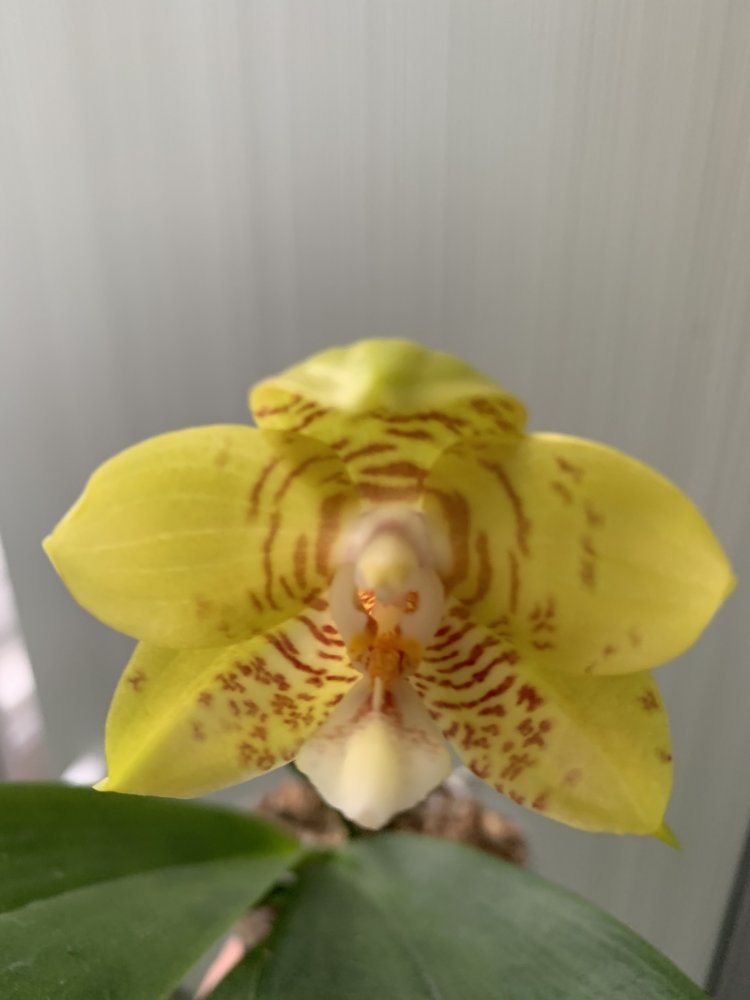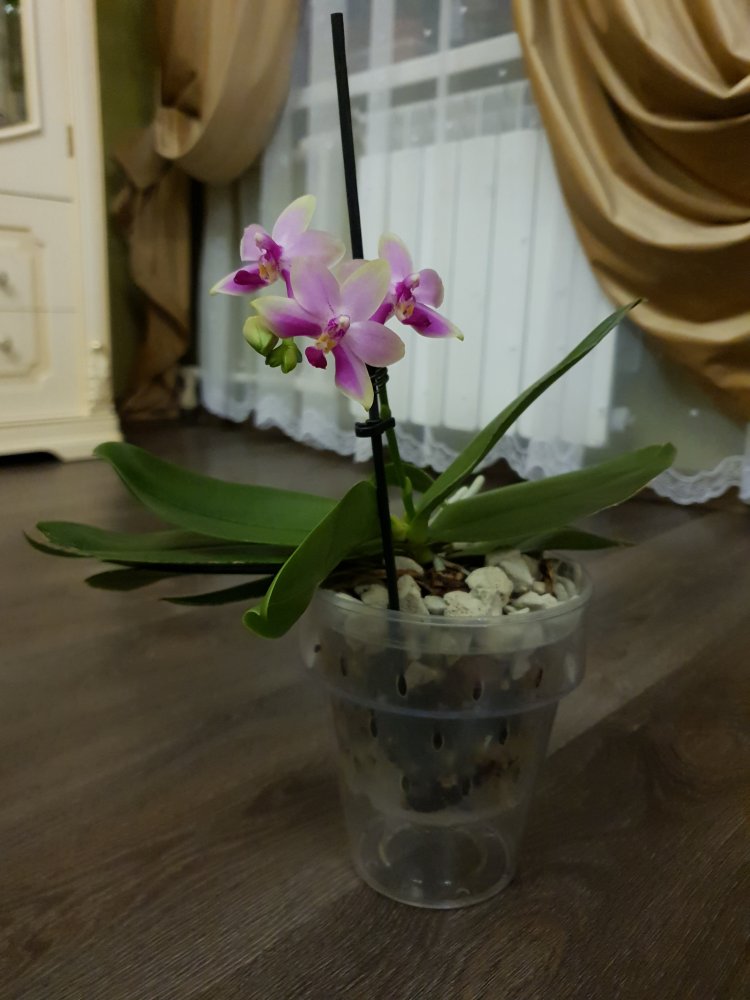 Очаровательная малышка Cattleya Hawaiian Splash ‘Lea’ вспыхнула яркими красками. Спустя полгода после получения проклюнулся цветонос. Цветение получилось скромным, и от этого, кажется, орхидея выглядела ещё милее.
