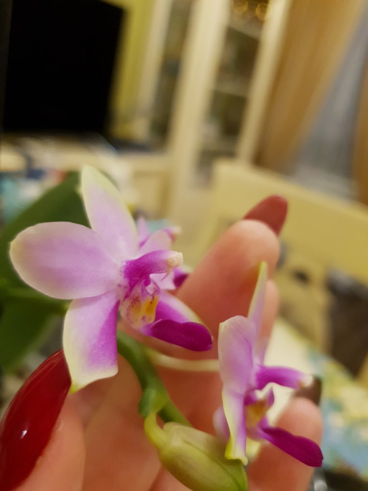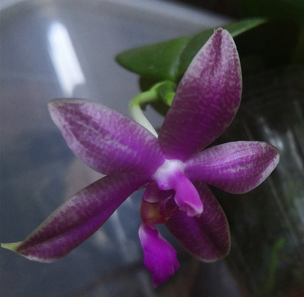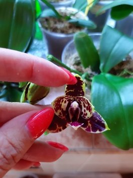 Всем добрый вечер, решила показать, как расцвел кросс из спецпредложения Mituo Kaiulani Eagle 'DT' x (Samera-Su An Super Star). Очень порадовал, Размер 5,5 сантиметров, цвет передать очень сложно. Пыталась поймать, фото в помещении в пасмурный день и на улице. Края лепестков гранатово-сливовые с яркой пурпурной неоновой серединкой и неоновой губой, весь переливается. Очень ароматный, запах цветочно-лимонный. Интересно было бы посмотреть, как у другие расцветут из этого посева☺️
