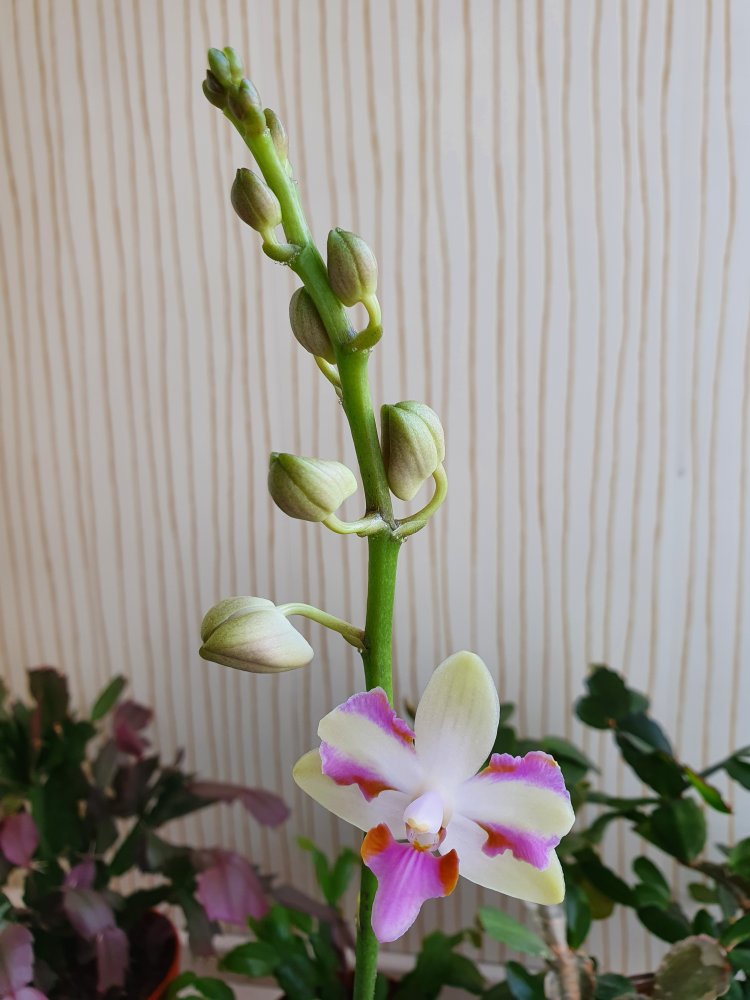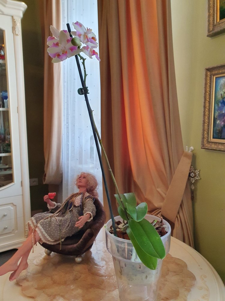 У мамы зацвела малышкой (примерно 2.0") я удивилась. Цветонос только меньше 20 см, а листочки 10 см. (3 листочка). 4 цветка пока только осилила. Доращивать цветонос может и не хватит сил. Поэтому Ваша тоже может в неожиданный момент удивить Вас@Angelica050, какая красота! Я от своего никак не дождусь...
