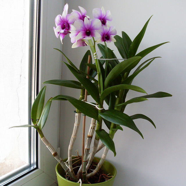 Пока я словами сыплю похвалу, Dendrobium Polar Fire делом подтверждает своё трудолюбие. Не успев отцвести, орхидея стала растить цветонос на другой псевдобульбе, простояла без цветков всего месяц и вновь принарядилась. Наверное, это было бы невозможно, не будь она таким крепким, разросшимся растением.