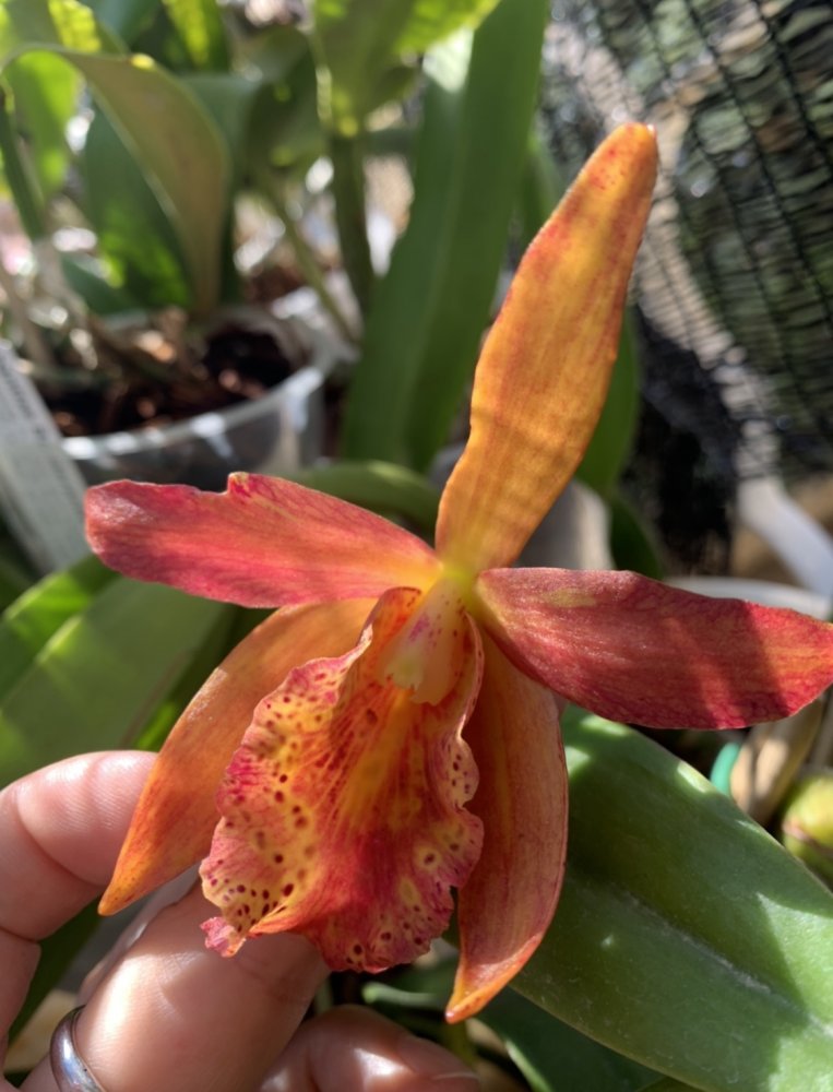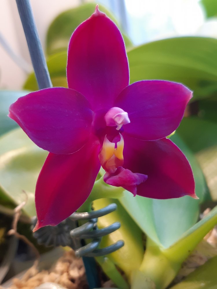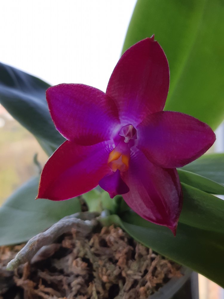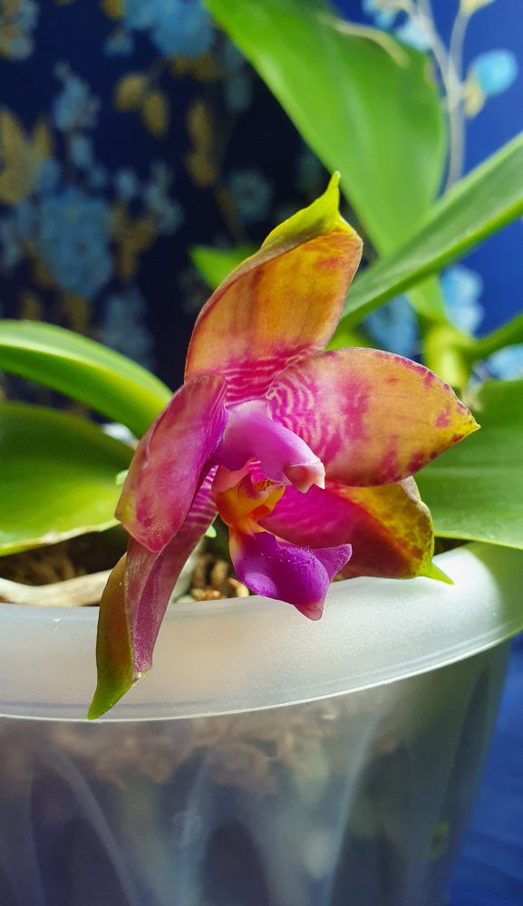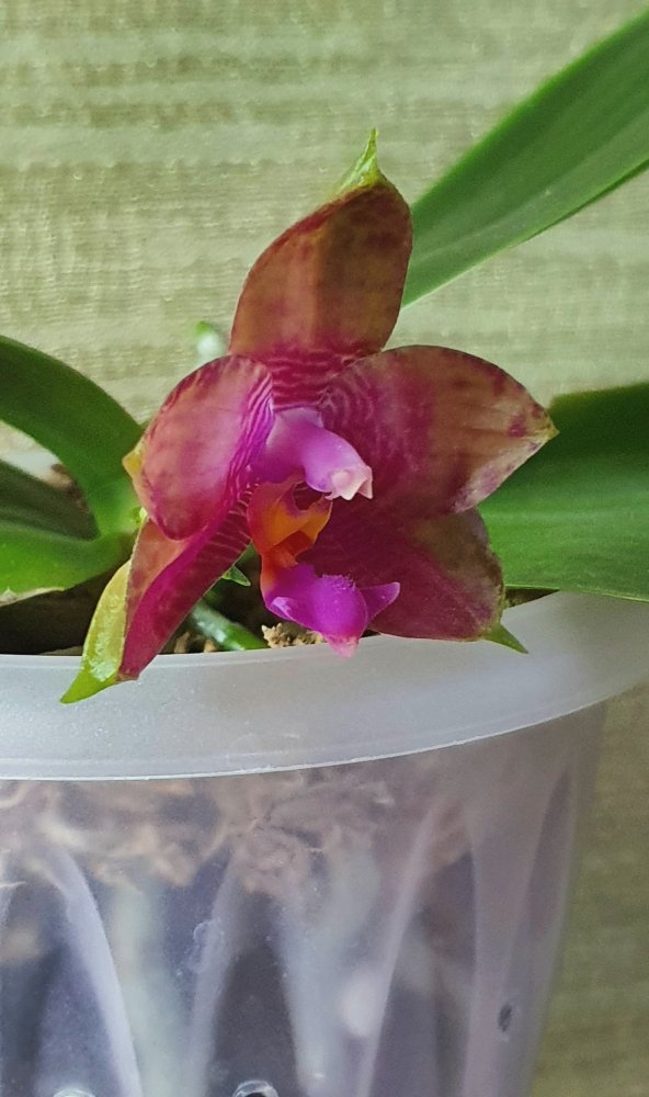 Первое цветение, всего 1 цветок, хотя казалось бы корней много и давно уже размер цветения достигнут, но вот только в этом году разредилась, прошло 2 года с момента получения напрямую у Schwerter orchids. Blc. Tetradip Junkho x L. Dayana
