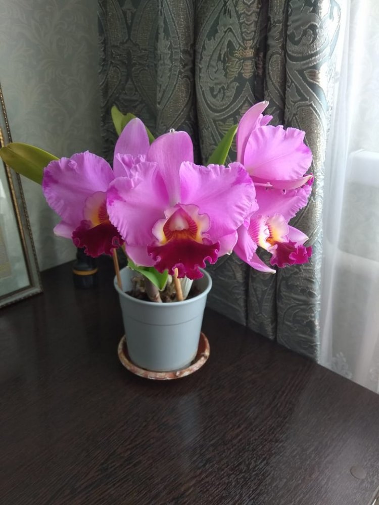 Потинара "Криейшн". Размер цветов 7-8 см. сильный и очень приятный аромат ( на мой нос - сирень, пион, гвоздика). Беспроблемный цветун (единственное - требует много света для цветения). Эти 4 цветка ароматят на всю комнату и даже больше... Очень рад, что он у меня есть (на момент фото орха была у тещи "на блинах").