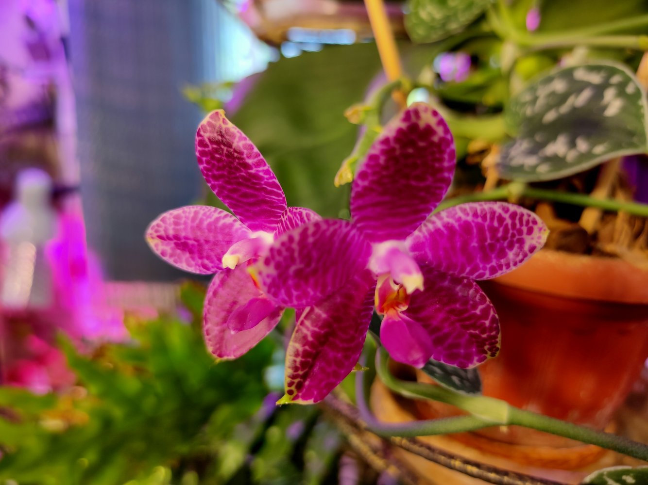 Я ничего особенного с ним не делаю, обычный субстрат как для всех летнецветущих фаленопсисов. В моих достаточно сухих условиях это смесь средне-крупной коры с перлитом, углем и сфагнумом, плюс ложка торфа, в целом субстрат нужен чуть более влагоемкий чем для амабилисов. Все горшки у меня прикрыты мхом. Все это в комплексе позволяет полив раз в неделю с подкормкой 1/4-1/8 рекомендуемой дозы удобрения 20-20-20, полной просушки субстрата до хруста я никогда не допускаю. По температуре ночью зимой иногда доходит до +10 и даже ниже, днем жарко +20-+30. По свету они у меня все расположены на пределе своих возможностей, солнечное восточное или северное окно (аналог южного в северном полушарии), с затенением москитная сетка плюс ветки деревьев. Вообще по моим наблюдениям пока листья у орхидеи не горят то света много не бывает. Ну и конечно же активное движение воздуха, это настежь открытые форточки в хорошую погоду, вентилятор, переезды на балкон летом и т.д.