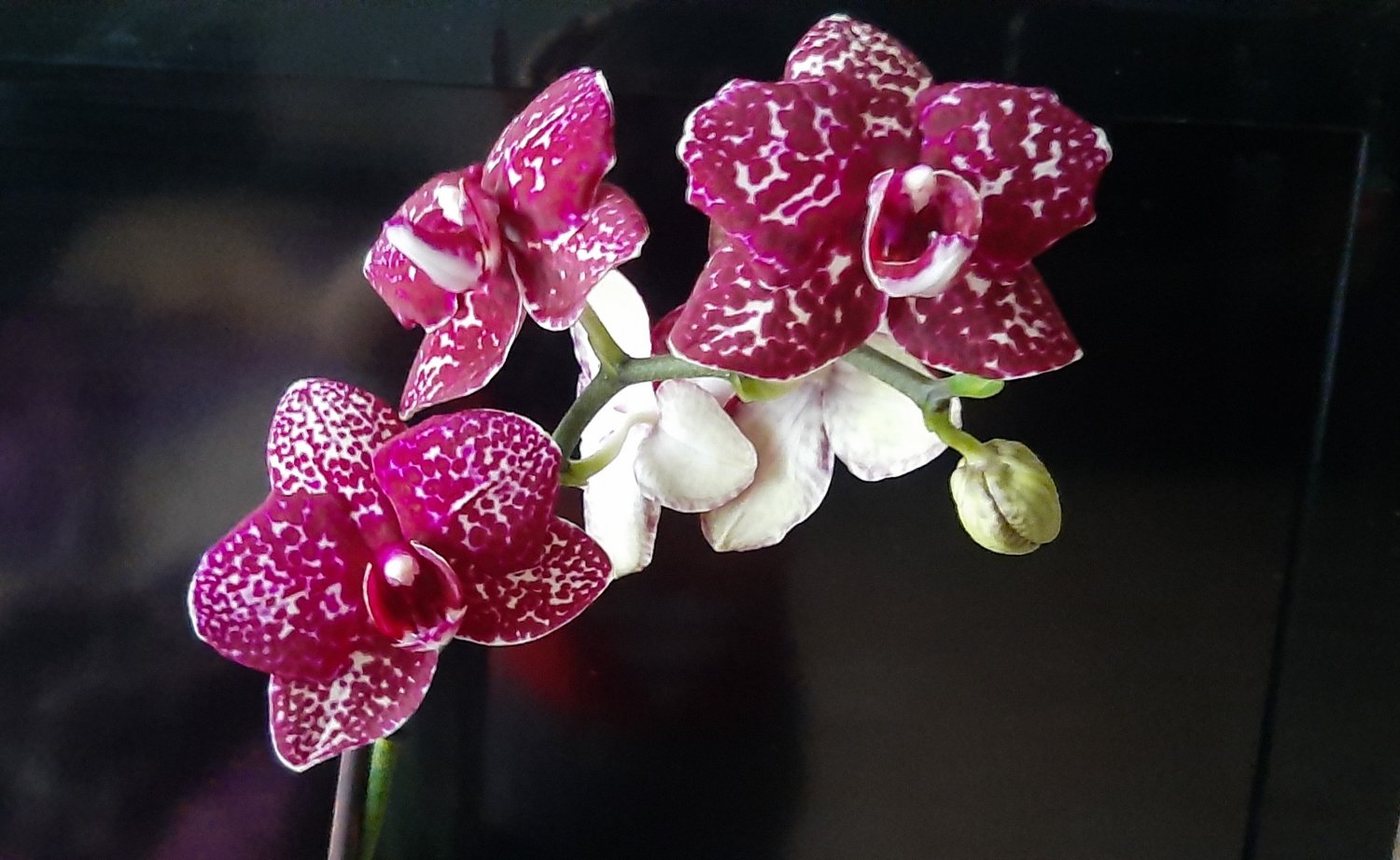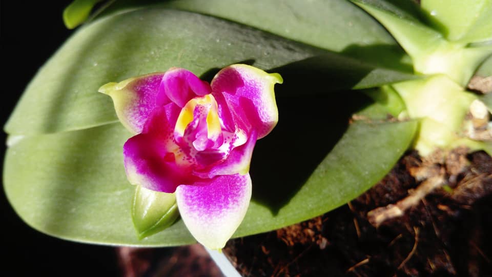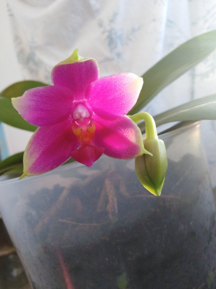 Phal. Vio Vio, никакая не Кошачья Морда. Та же маджента, те же острые, чуть зеленоватые кончики лепестков. Но - полноценный цветочек.