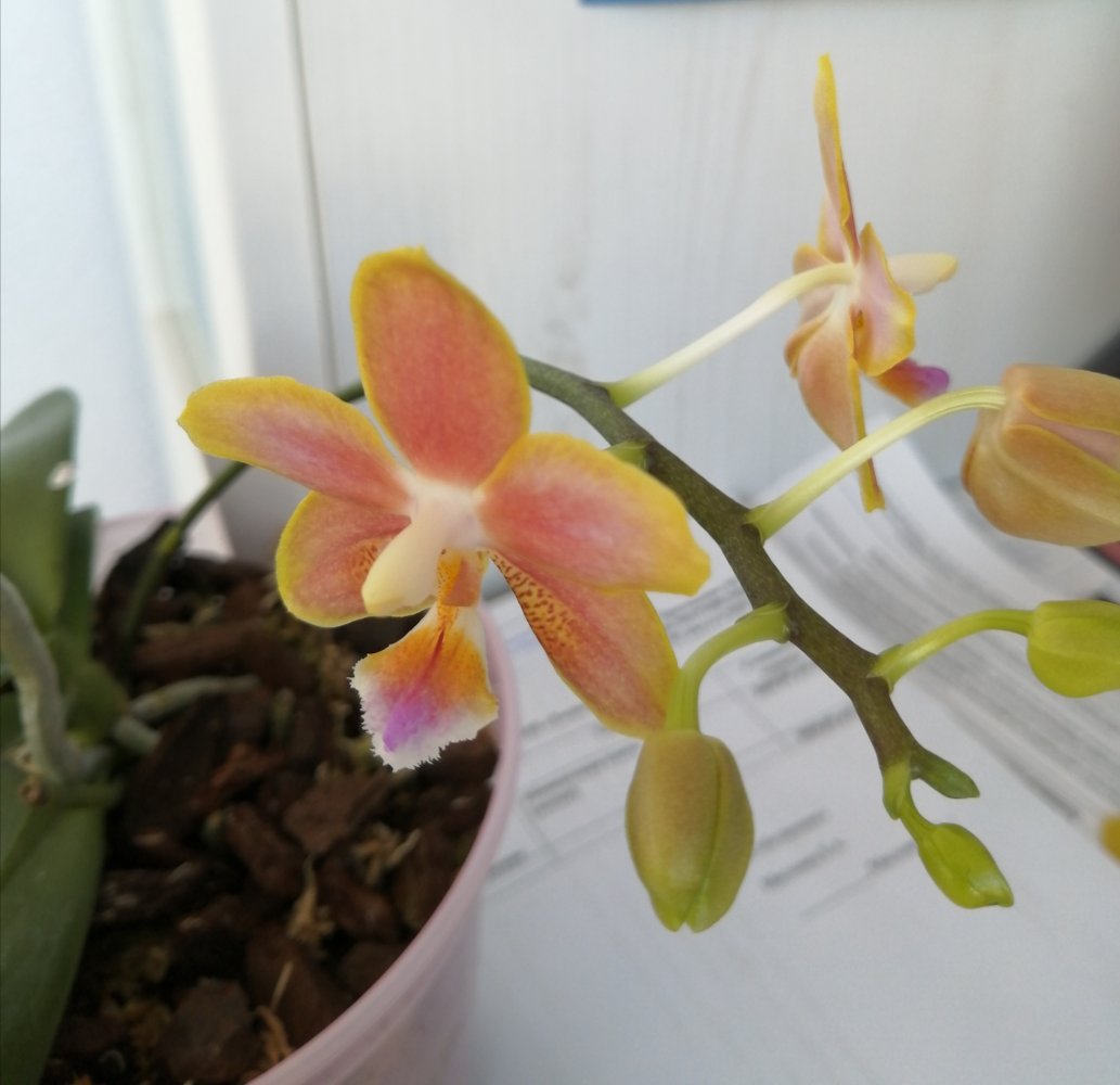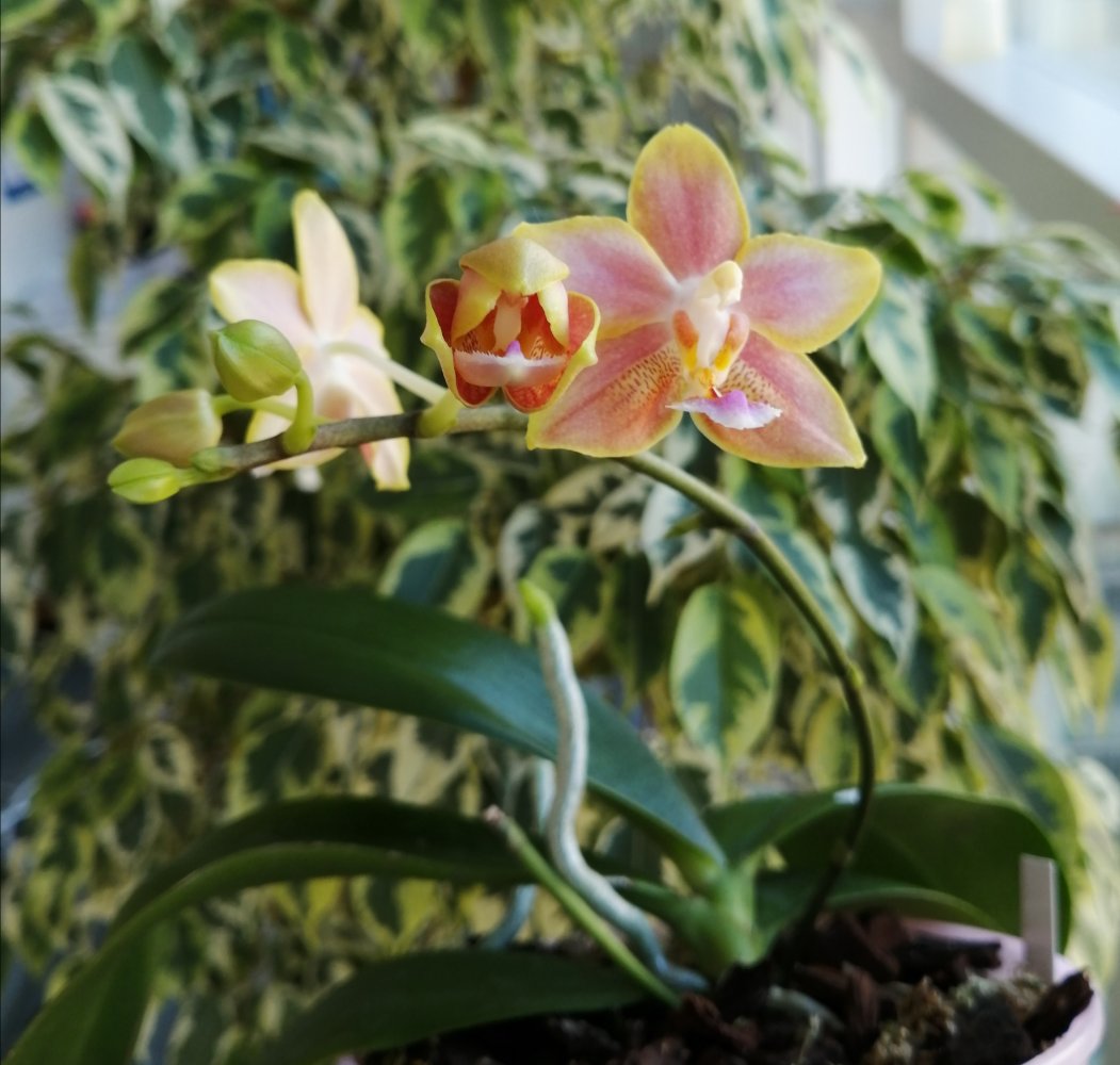 Phal. Zheng Min Anaconda полученная как и у многих вместо Phal. Chienlung Black Parrot Snake. Но радует трудолюбием, да и красивый все-таки цветок.