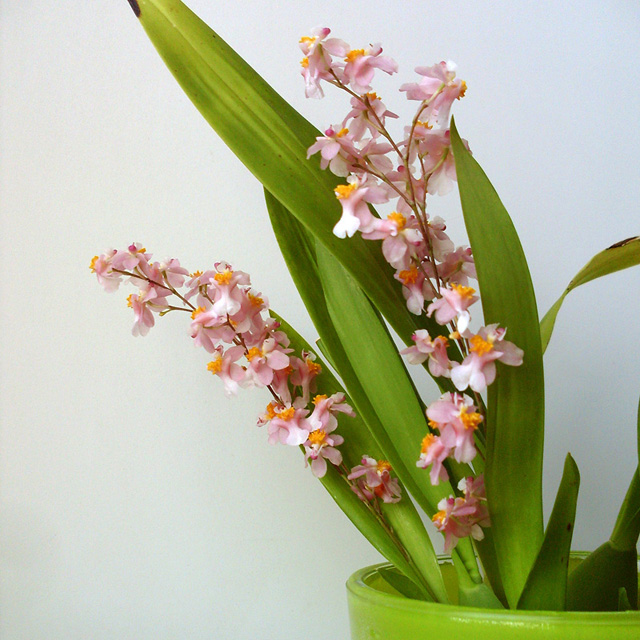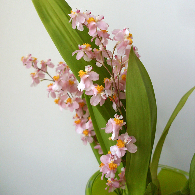 Цвела милая и нежная Oncidium Tsiku Marguerite 'Glory'. Несмотря на скромный размер растения и маленькие цветки, орхидея заявляла о себе сильным запахом карамели. Так как цветение было с двух псевдобульб, цветоносов тоже было в два раза больше. Если бы такой прирост был всегда!