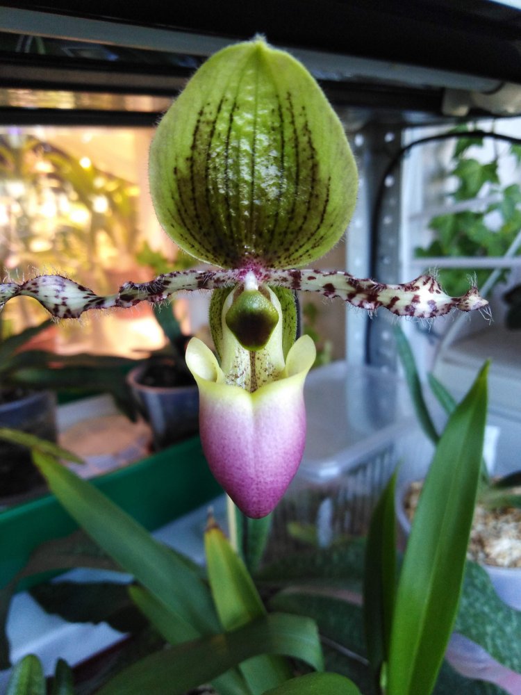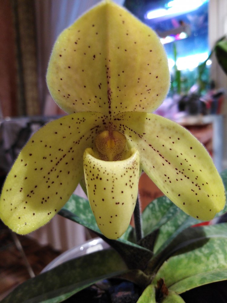 еще один револьверный цветун, держит по 1 цветку, цветет с 20 июля Paph. Liemianum