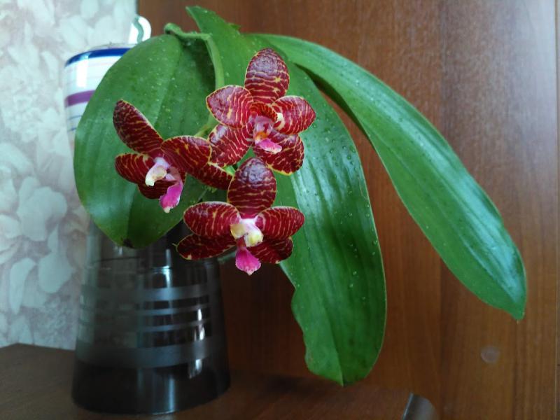 P.Red Jaguar 3.5, спецпредложение 30252, первое цветение, 5 см цветок, есть слабый аромат, не могу передать. Все три цветка с мутацией колонки.