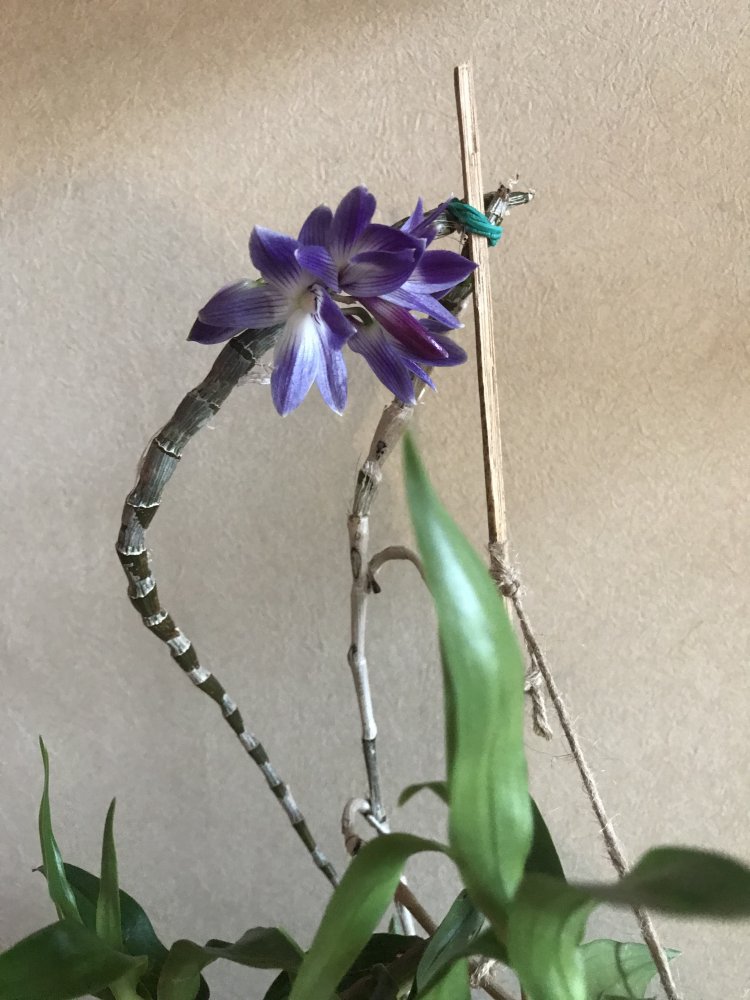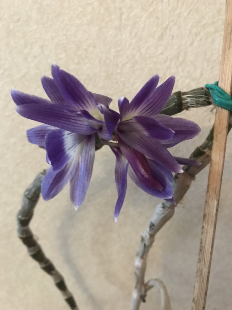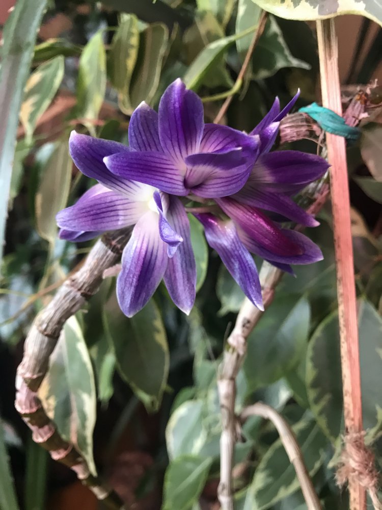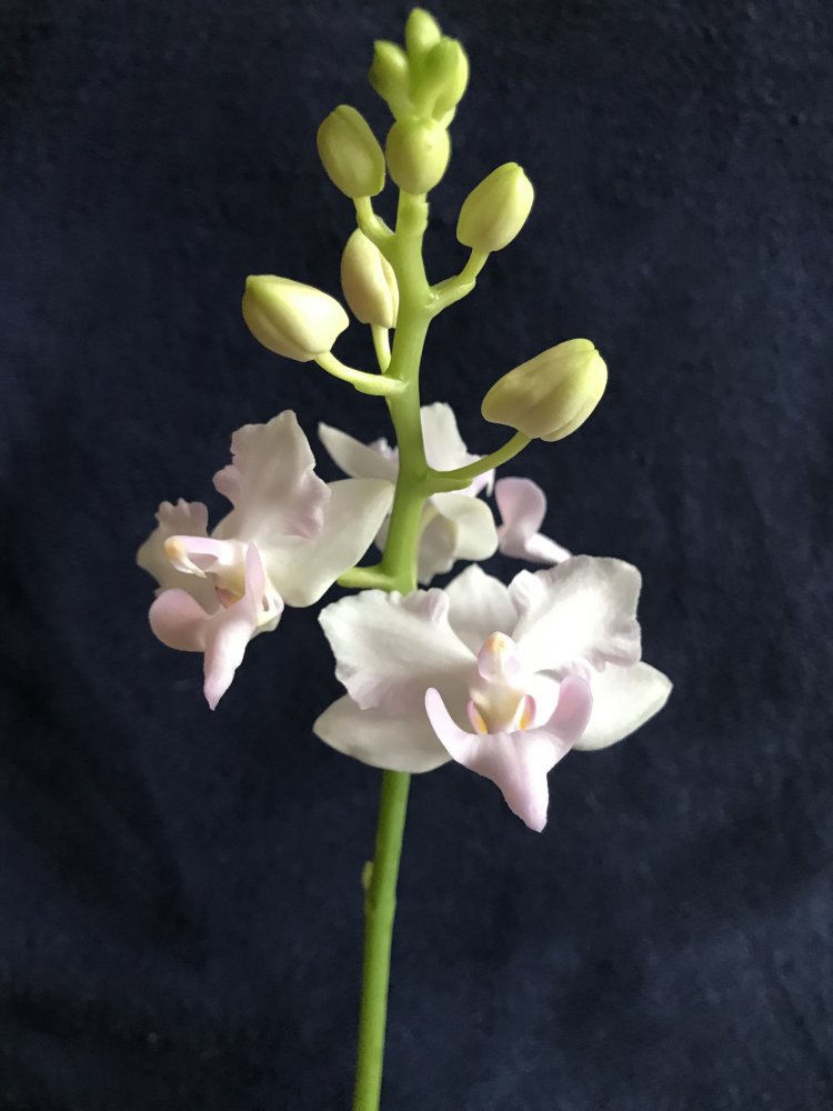 Цветет дендробиум Victoria Regina, получила летом от Ecuagenera в хорошем состоянии, корни были обмотаны сфагнумом, так и посадила в смесь керамзита, сфагнума и лечузы. Адаптировался быстро, к осени стал растить новый рост, и одновременно появились бутоны, 6 штук на коротком цветоносе. Вытянул все шесть цветов, и они действительно синие!