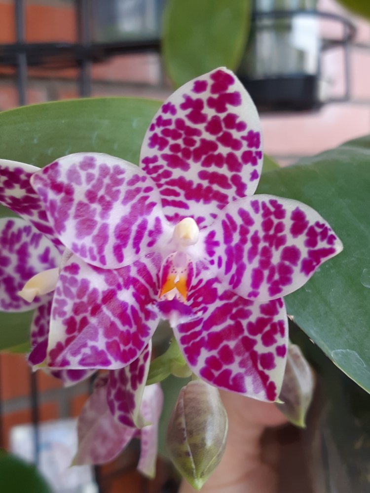 Phalaenopsis amabilis fma. Palawan, молодой сеянец зацвел, обожаю фаленопсисы за то что они готовы цвести едва ли не из фласки. Цветок 7см в диаметре, но это первый цветок первого цветоноса в жизни этого растения, так что в будущем возможно что будут ещё крупнее. Запаха нет, на губе длиннющие усы, колонка ярко-желтая в крапинку, заостренной V-образной формы, что характерно для этой формы амабилиса, произрастающей на юге Палавана и в частности на острове Балабак. Содержится в стандартном субстрате для cool-spiking фаленопсисов из коры, угля, перлита и сфагнума.