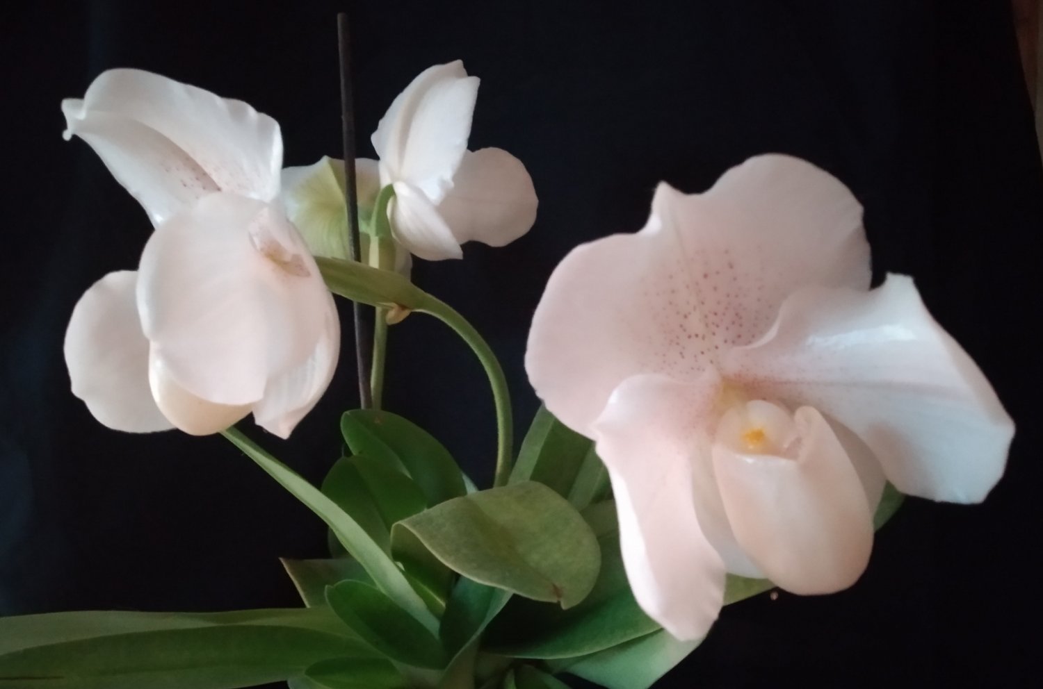 Paphiopedilum 'Lady White' в полной красе и Coelogyne xyrekes