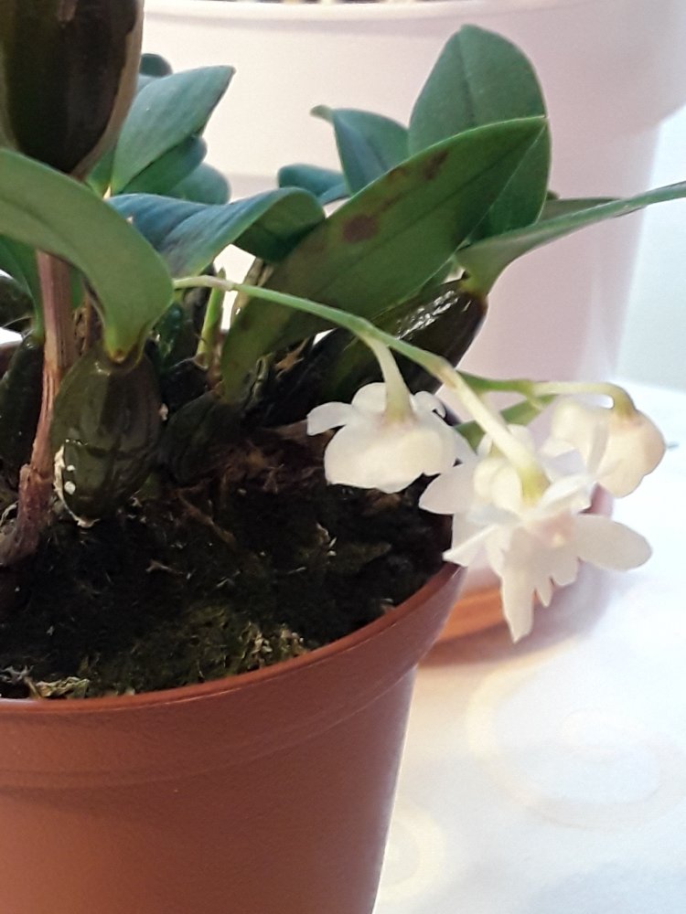 Расцвели две мини орхидеи - Masdevallia decumana, Ecuagenera и Den. aberrans, Schwerter, не ароматные. И цветет гроза аллергиков - Cyc. Taiwan gold orange с резким удушающим запахом жидкости для снятия лака.