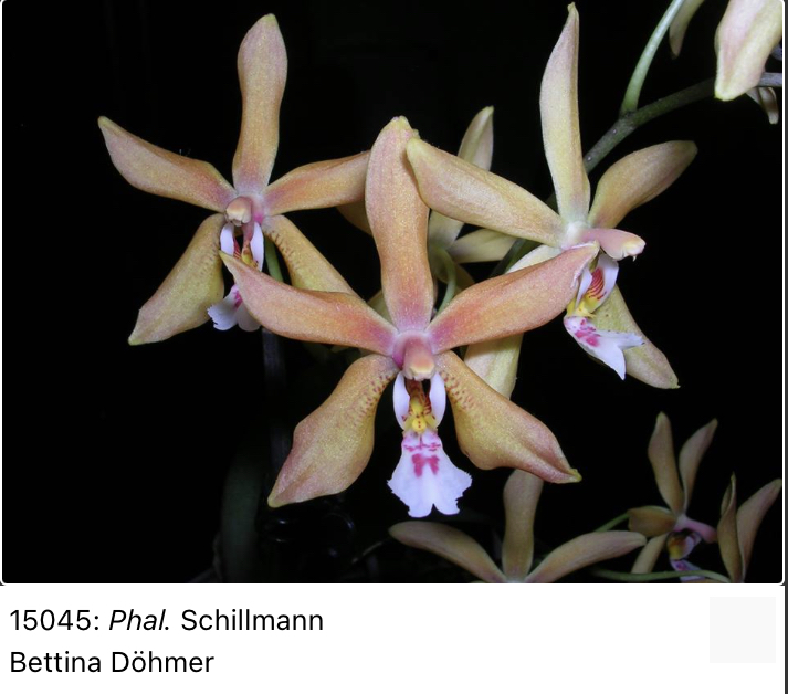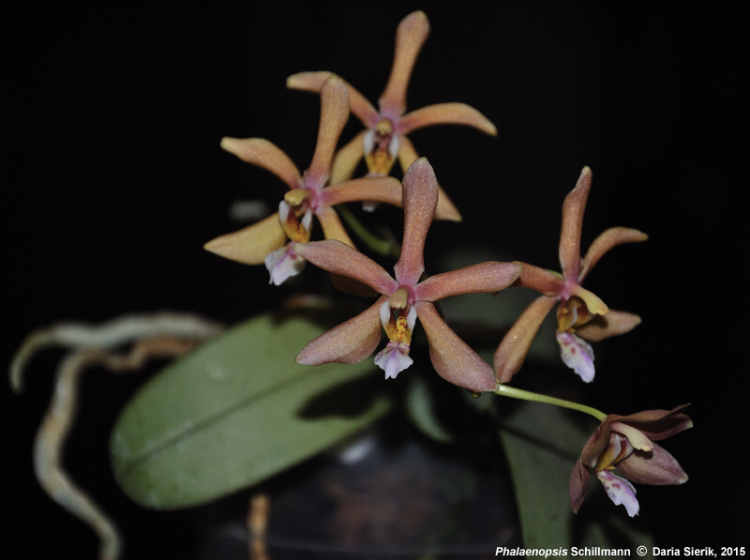 Сорт по идее не зарегистриовван как bronze maiden. Правильное название Phal. Schillmann (для меня самой откровение если честно) Schilleriana x manni