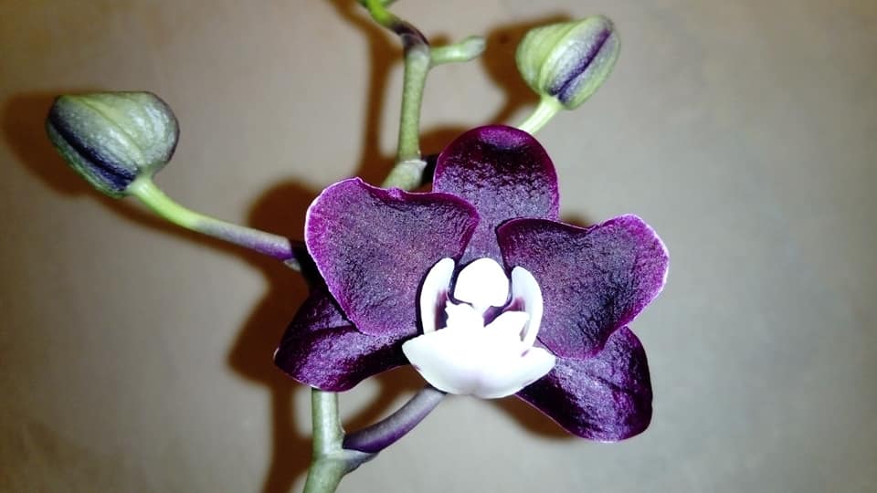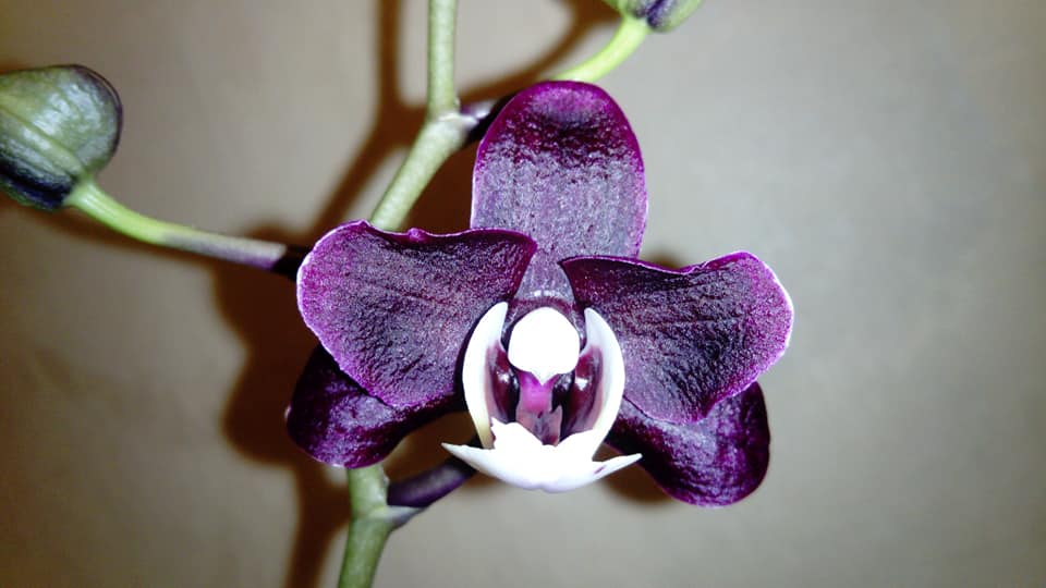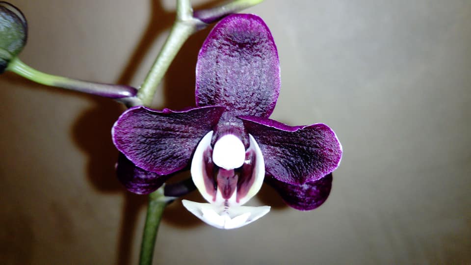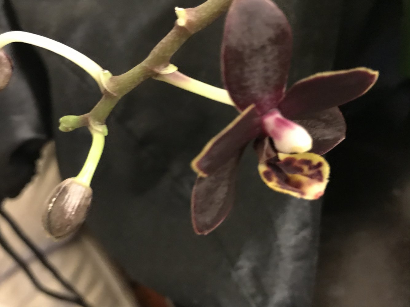 Не могу сказать, что Kaoda Twinkle входит в список моих любимейших фаленопсисов, но есть какая-то притягательность в этих тёмных лепестках, неровных, бугристых, как будто созданных из шагреневой кожи, очень плотных, практически пластиковых, и нежной белоснежной губе и колонке...