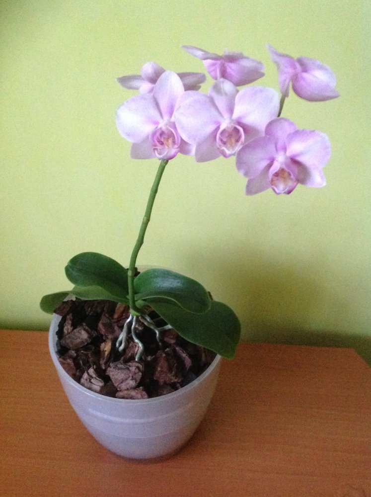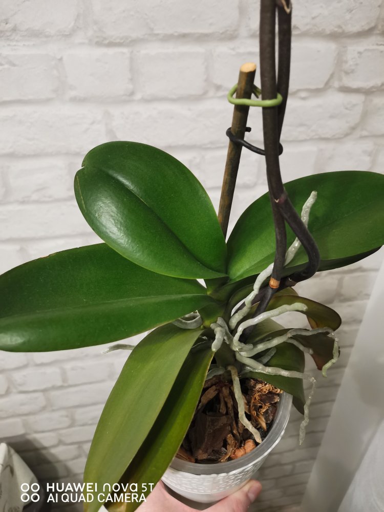 После цветения обновил только верхний слой, чтобы корневую не травмировать. То что само высыпалось при аккуратном переворачивании вверх дном, поменял на смесь мелкой коры и угля.