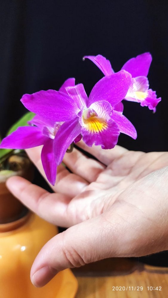 C. Yuan Dung Sweet " Dragon Fruit", от кого получала, не помню. Тоже первое цветение, пока только два цветка на цветоносе ( потом будет букет, когда наберет сил и массу). Аромат приятный, сладкий 20201121_214154.jpg