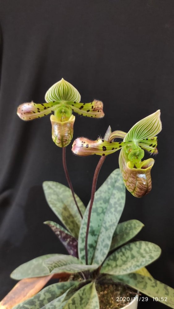 3. Paphiopedilum venustum. От Shwerter. Приехал осенью 2016, покупала два растения в один горшок, для кучности цветения. Так и цветут дружненько, два братца. По-моему, в этом году более коричневые, чем в прошлом...