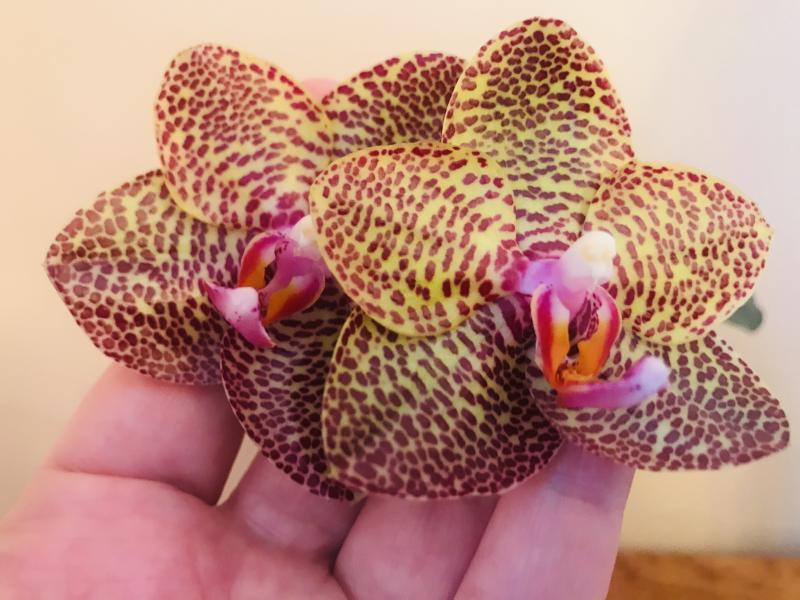 Все, как и на фото. Пока первое цветение, только 2 бутончика, но очень медленный товарищ в роспуске.