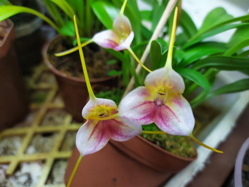 Ура! Зацвела моя первая Masdevallia. Год назад, поддавшись общему ажиотажу, заказала в Equagenera около 10 шт. Эта оказалась самая "сговорчивая" - M.glandulosa Luske x M.sanctae inesa