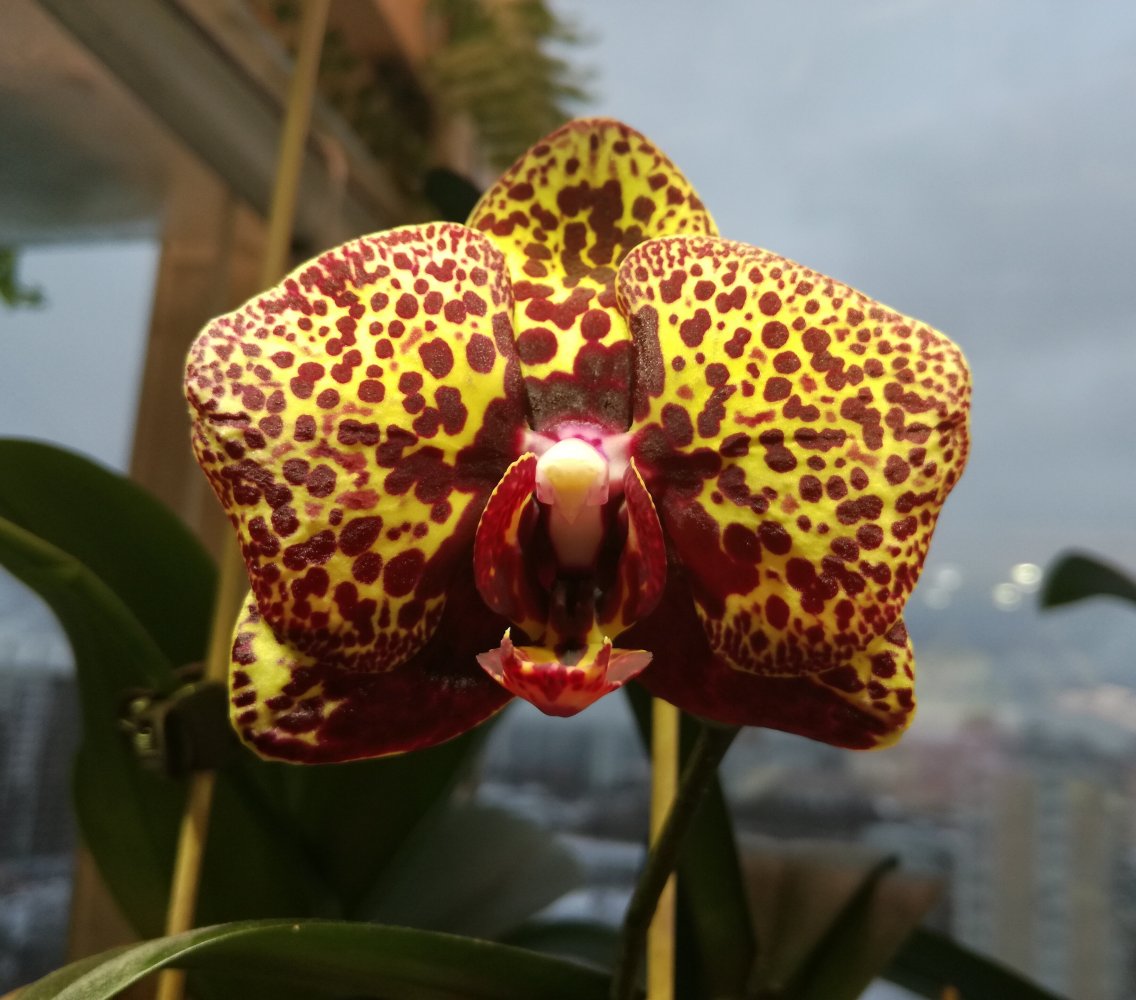 Зацвел I-Hsin Yellow Leopard из спецпредложения 40318, получен в августе. Очень долго готовился, дул бутон (пока только один), но ожидание того стоило - Красавец! Наконец-то я поняла, чем он внешне отличается и почему он - Леопард. Губа - просто миниатюрная нижняя челюсть кошки, с клыками!