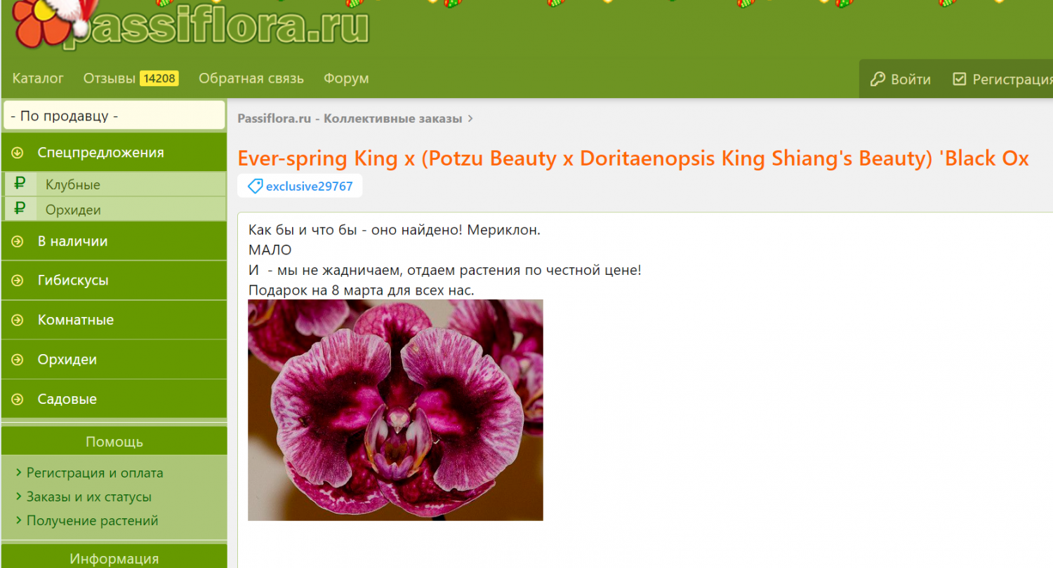 @admin, именно 8 марта был предложен мериклон этого растения. Иногда тексты к поздним предложениям остаются старыми