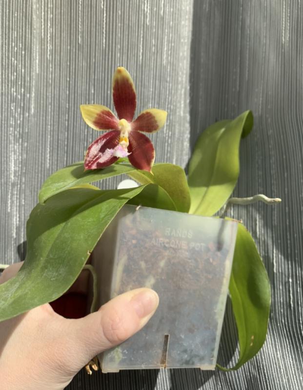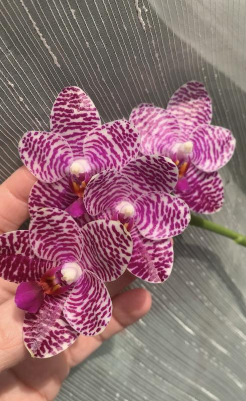Это к больной теме - о том, как условия содержания влияют на расцветку вандовых... Пресловутый Бангкок Сансет, который так огорчил многих владельцев - вот, В кладовке без солнца, без свежего воздуха, без подкормок - и нет, совсем не та бледная немощь, которая расцвела у некоторых... Что и требовалось доказать!!!!!!!! Не влияют условия! Если растение правильное, то есть именно то, которое этим ярким именем названо, то оно правильно расцветет и в кладовке!!! А если не то, другие родители, допустим альбовые формы, то и на солнце расцветает так, чтобы уж лучше и не расцветало! И поэтому не может называться этим ярким именем, в чем я, к примеру и не сомневалась!Rhynchorides Bangkok Sunset. Второе домашнее цветение, первый цветонос сломала. Растет с ОКС, раз в три дня бросаю в таз с водой на часик, не удобряю. Растет полностью на искусственном освещении, в кладовке. И вот при таких спартанских условиях, такой симпатичный и правильный вышел.