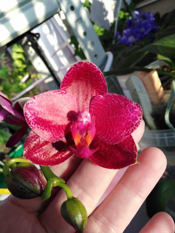 еще один из новичков, Phal. Mituo Prince 'Bb' MCL 116 о чем думала, когда его заказывала... :scratch_one-s_head: надеюсь, в последующие цветения чуток исправится форма, да и сейчас у него очень приятный виолацейный аромат