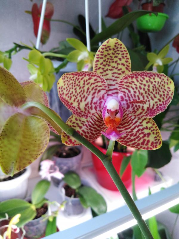 ну и расцвел Phal. Ld sun dragon snake scale из спеца 29799, пришел клопик прошлым летом, в принципе таким и остался, но показать свою мордочку все же решил :025: думаю, когда подрастет и поднаберется си, будет просто шикарен