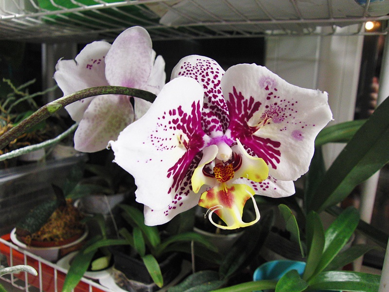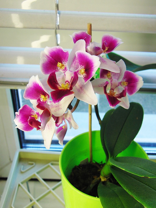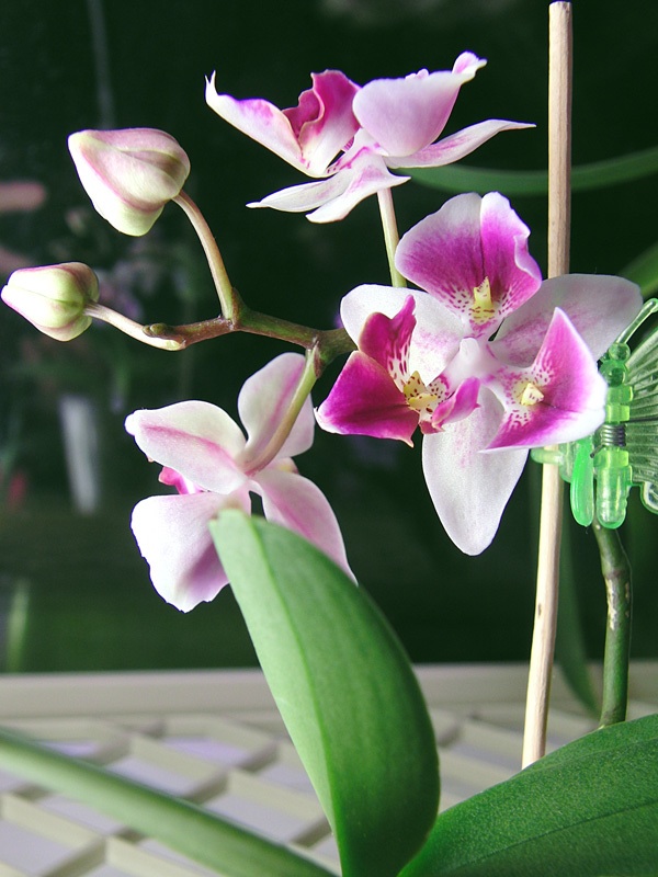 Melissa, нет, наоборот, совершенно беспроблемный. Получила прошлой весной, взрослым растением. Три голенастые бульбы, очень пересушенные. Посадила в лаву пополам с корой, за прошлый теплый сезон вырастил два роста, меньше, чем старые. Зимой стоял без движения, дул новую почку. Периода покоя не было, тепло, свет, полив, влажность как летом, только удобрения снизила, но это для всех.(1/4 от обычной дозы, и редко) с февраля начал расти цветонос со старой бульбы. Сейчас еще на одной старой бульбе наметился цветонос. У этих дендробиумов бульбы дают цветоносы несколько раз. Цветение долгое, так что, надеюсь, что с двух цветоносов одновременное цветение увижу.