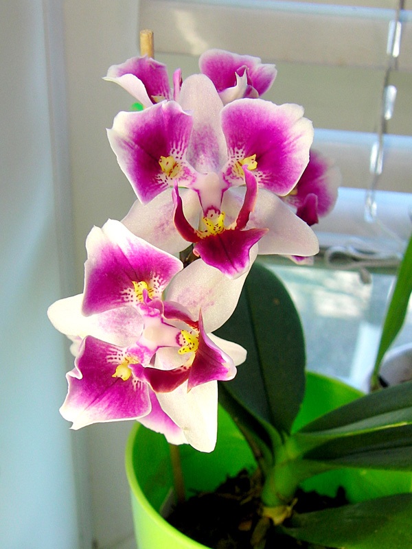Но этот более необычный - яркий, геометричный, воздушно-объемный, цветы долго держатся (4см) Достойная минька! Есть один недостаток - очень мягкий цветонос, ну совсем как веревочка. Возможно, он должен быть ампельным.