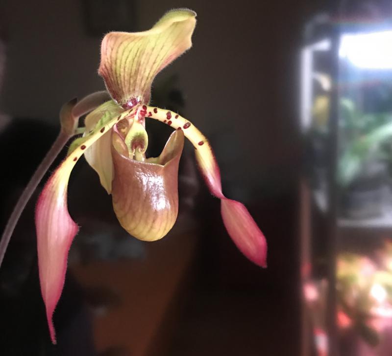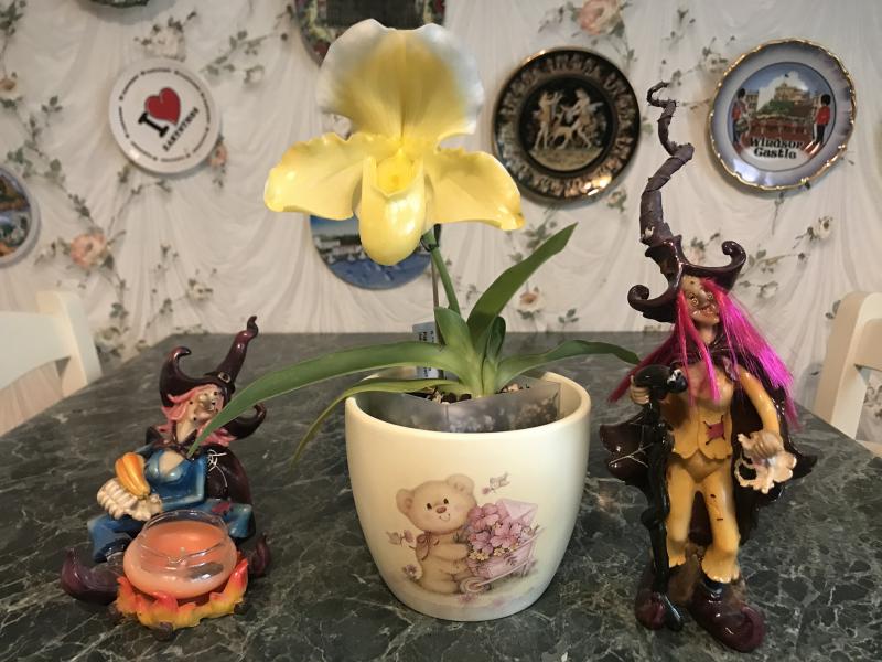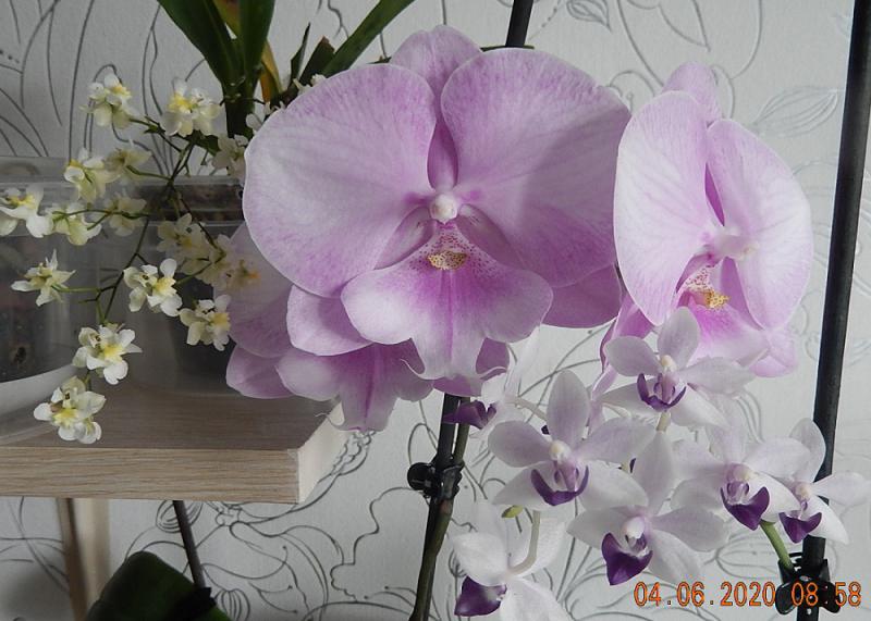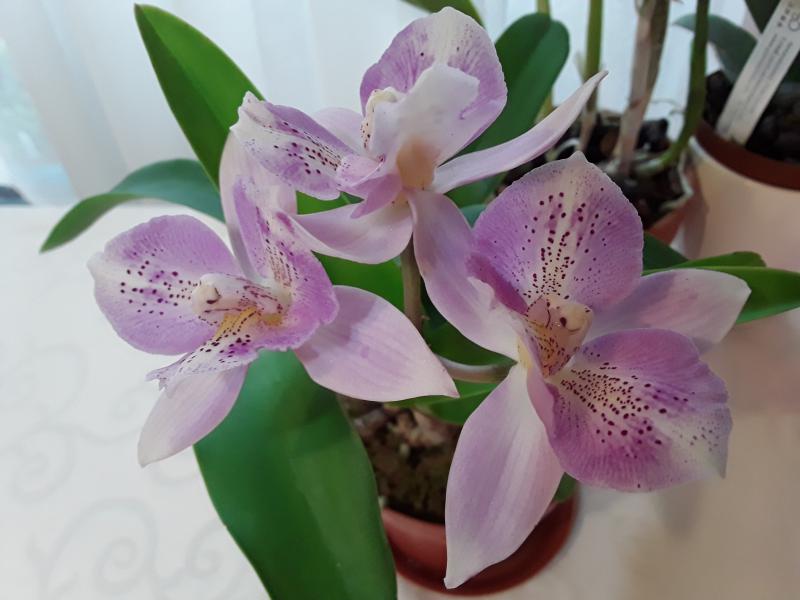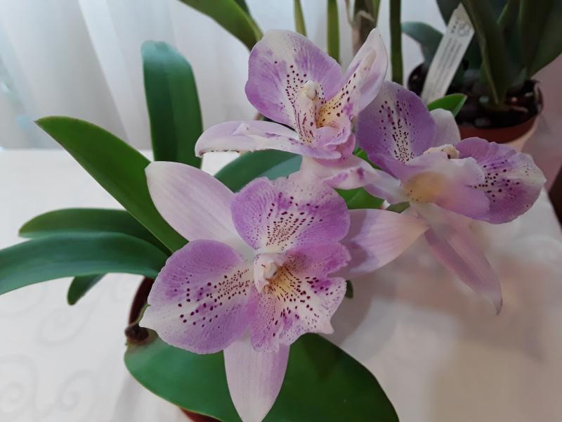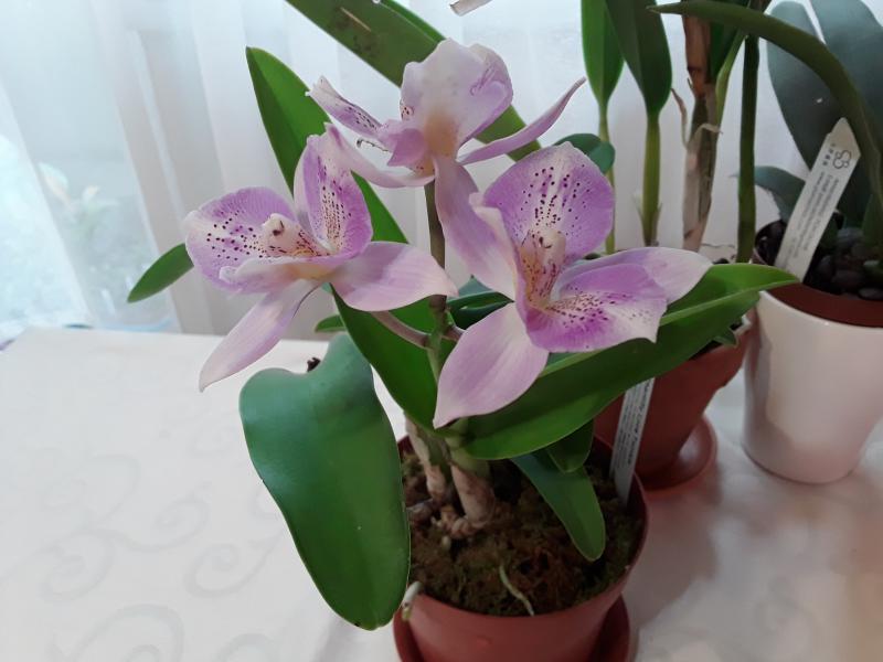 Diac. Chantilly Lace Twinkle, Schwerter. Получала здесь 3 года назад крошечным растеньицем без корней. Очень простая в уходе, быстрорастущая и охотно цветущаяя каттлея. Само растение компактное, чуть ниже средних каттлей и немного выше мини каттлей. За год отращивает 2-3 роста, каждый из которых растет около 2 месяцев и,если было много солнца (либо другого освещения), сразу процветает. Зимой периода покоя нет, также растет, но намного медленнее. Цветы как у крупного фаленопсиса, около 6 см, ароматные. В первой половине дня приятно пахнут лимонными карамельками (конфетно-цитрусовый аромат). В прошлом году на нее было много спецов, охотно разбирали, но еще не получали, значит скоро многие станут ее обладателями)).