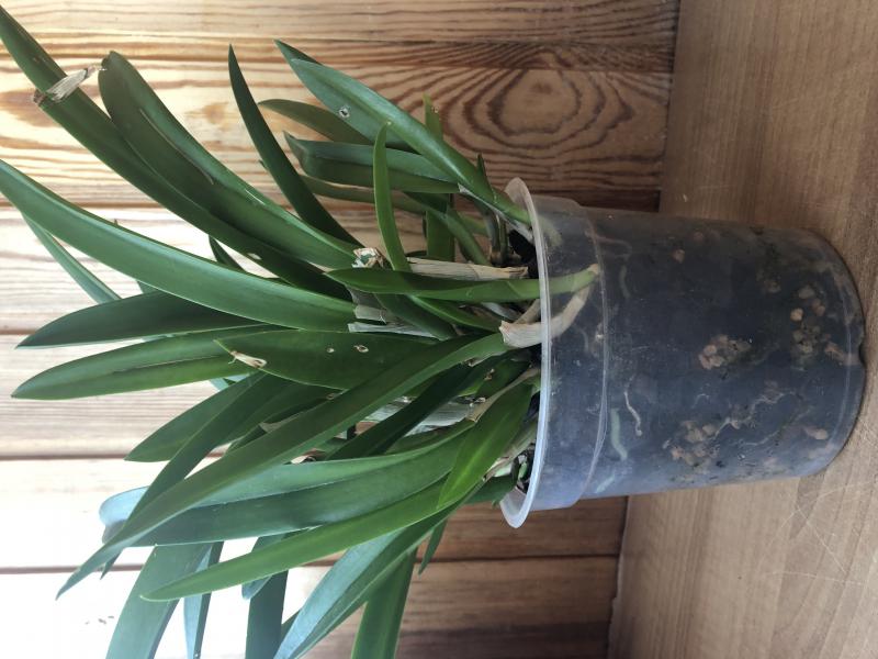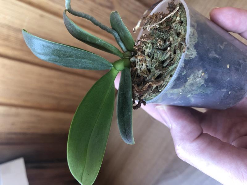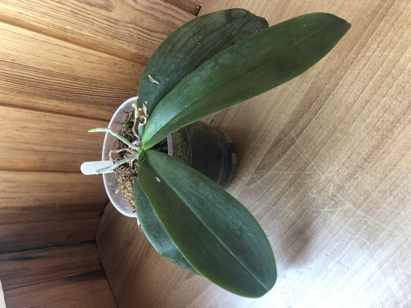 1. Phal.sanderiana детка, снята с растения 9 ноября 2019. Посажена в орхиату и мох, в поллитровом стакане - корни были очень длинные, не хотелось ломать закручивая, посадила в высокий стакан.
