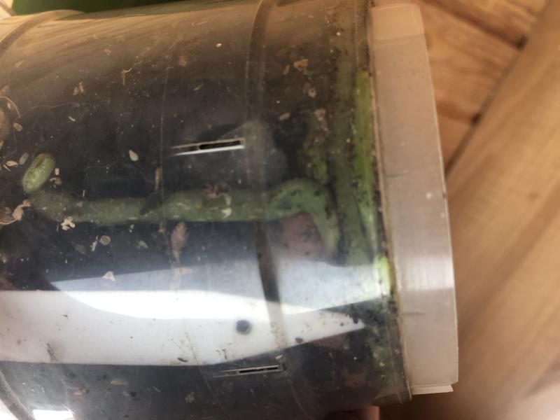 Огромное количество бульб, растет очень плотно, несколько направлений роста, сильная корневая. Горшек 15 см. Есть покусы от котов, чуть-чуть.