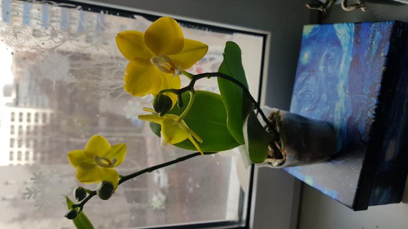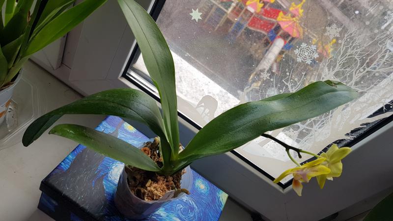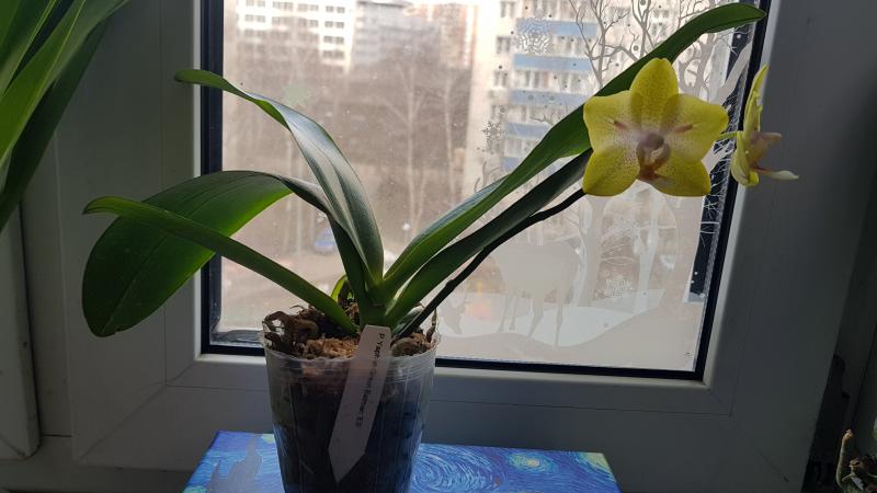 1. Phal. Sogo Meili '1751'*от Мики 2.5 давно тесен. Корневая с листья в отличном состоянии. Адаптированное, сейчас цветёт на 2х цветоносах. Цветочек держит долго. Со временем желтый цвет становится насыщенней.