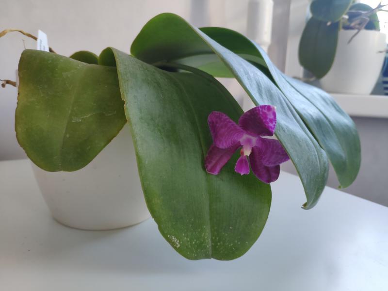 У меня несколько лет, пришел взрослый 3,5; с тех пор вырастил 3 жирных листа по 20+ см и новый цветонос.