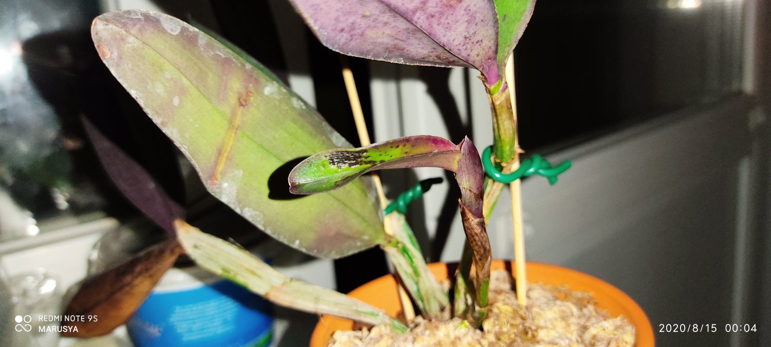 Каттлеи разных вариететов сильно отличаются друг от друга по внешнему виду. Схожи только по условиям выращивания и требованиям, а также общей миниатюрностью взрослого растения. Да, еще у всех этих каттлей внутренняя сторона листа при достаточном освещении имеет бордово-фиолетовый окрас. А молодые росты и листья до вызревания также полностью бордово-фиолетовые.